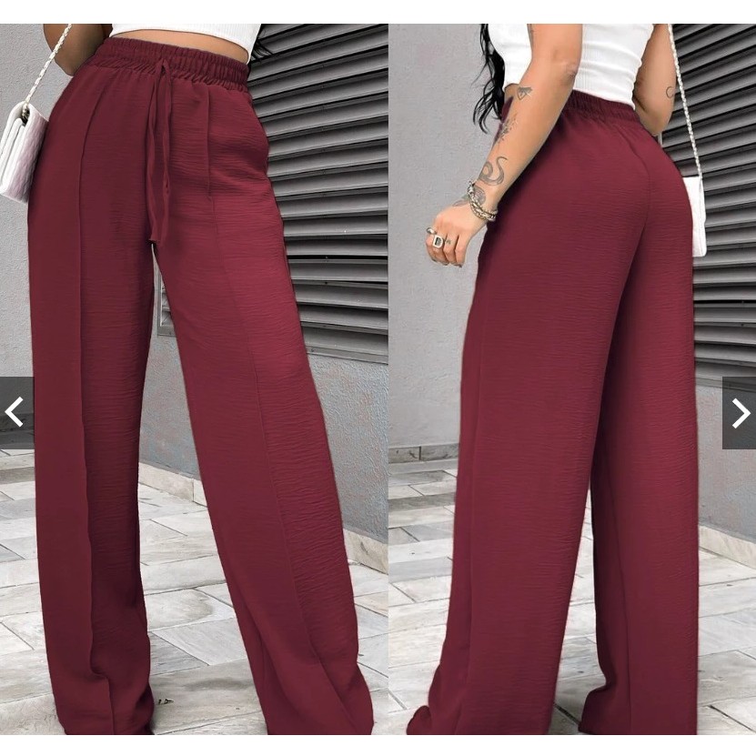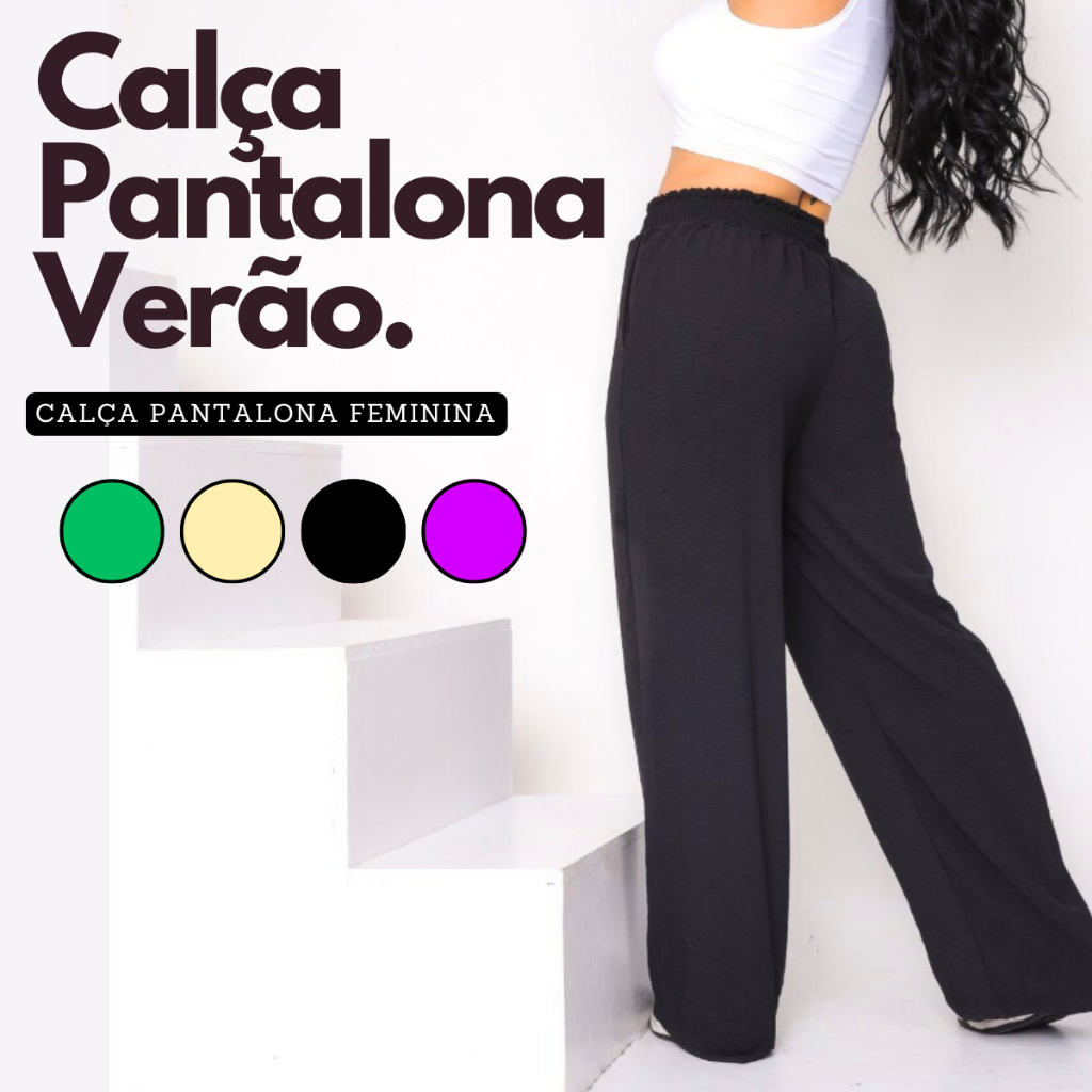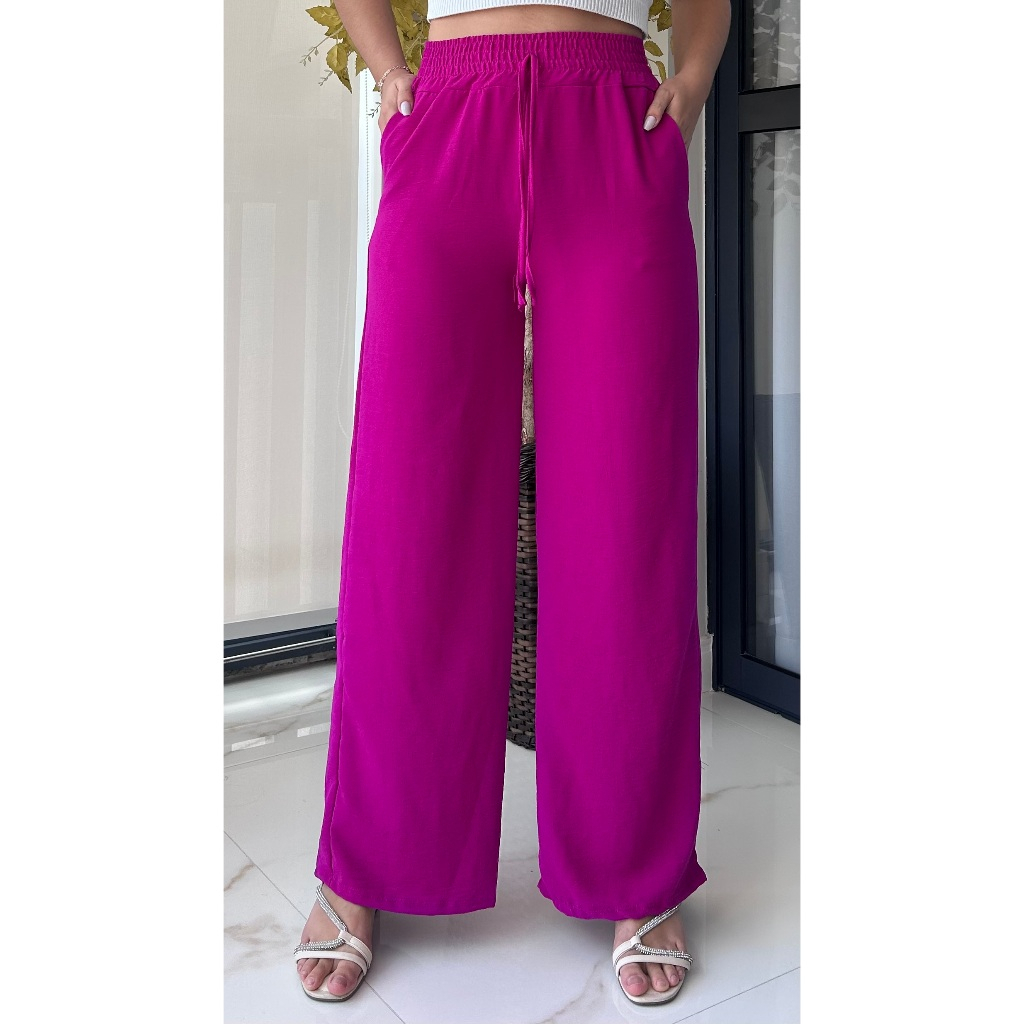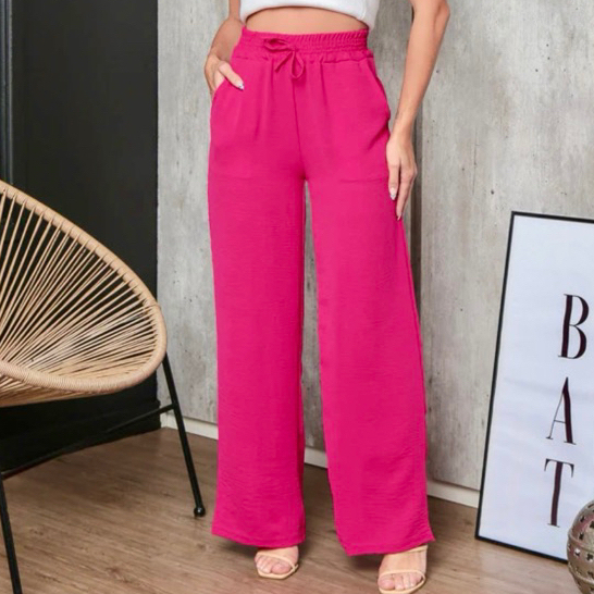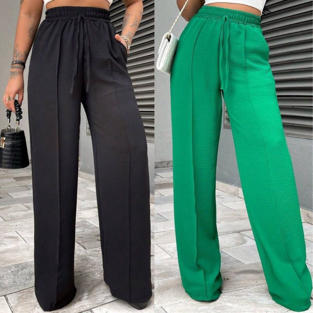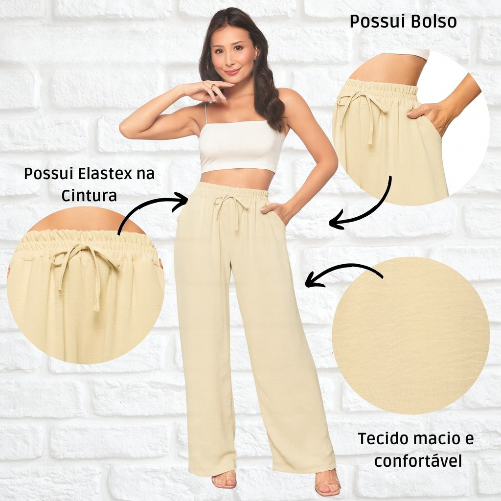 Calça Pantalona Feminina Duna Cintura Alta com Bolsos - Diversas Cores