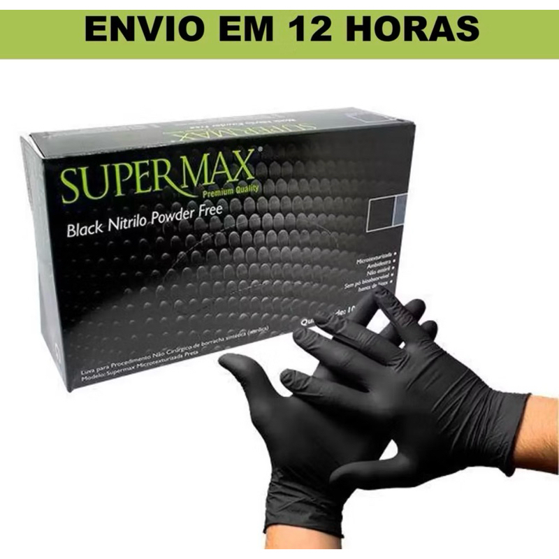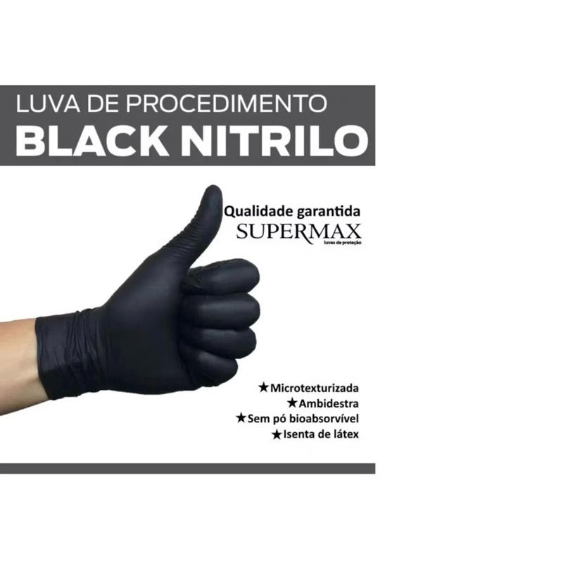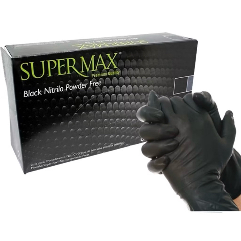 Luva Descartável Nitrilica Preta Black Sem Pó C/ 100 unidades Supermax
