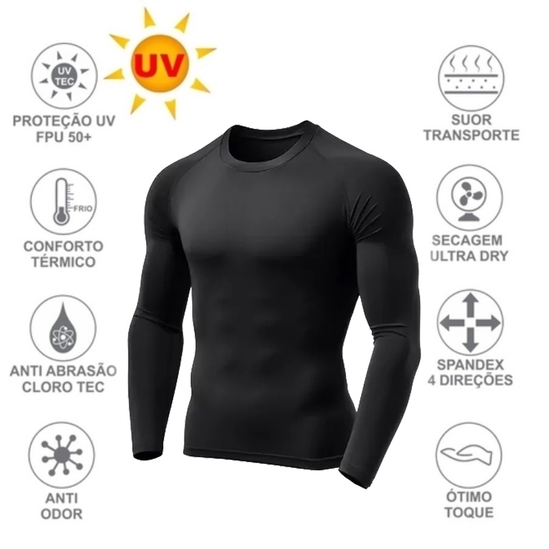 Blusa Uv Camisa Térmica Masculina Esportiva Roupa de Compressão Rash Guard