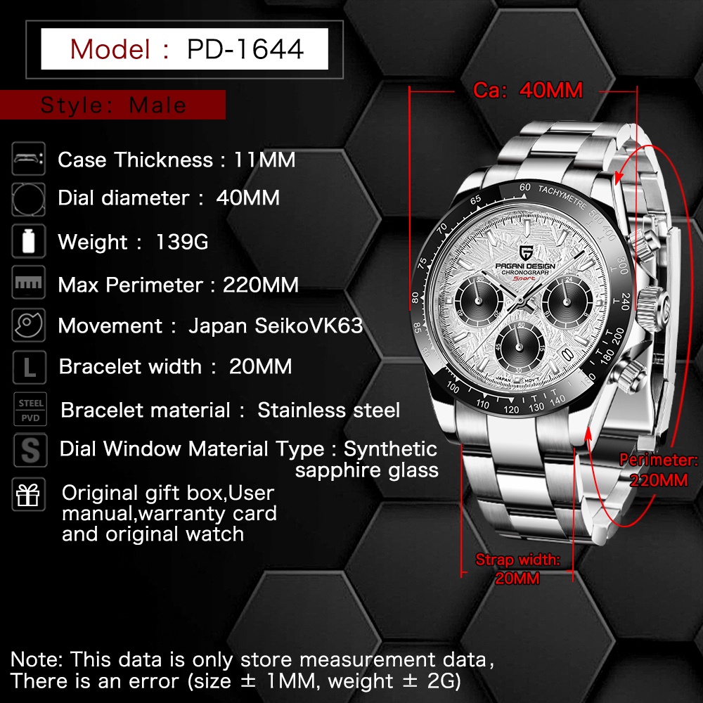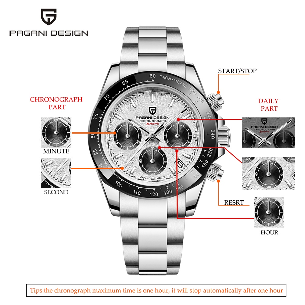 2026 Novo DESIGN PAGANI Original Japão VK63 Relógio Masculino De Aço Inoxidável Cronógrafo Quartzo À Prova Dwaterproof Á