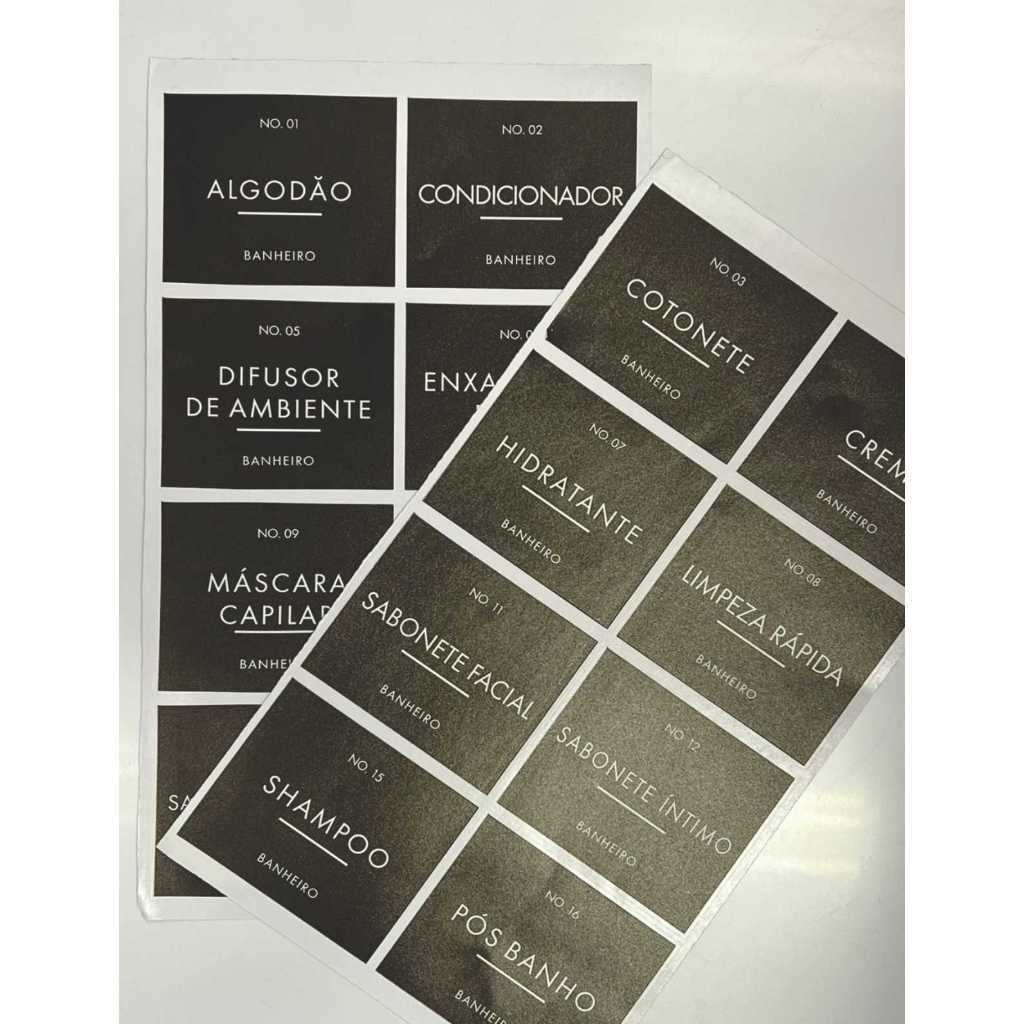 Rótulos Adesivos PRETO- Etiquetas Organizadoras para Banheiro - Decoração de Frascos - (16 unidades)