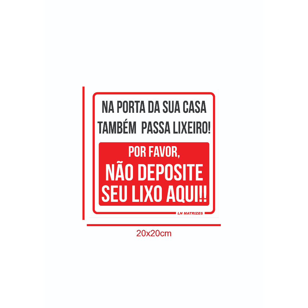 Placa - O Lixeiro também Passa na Sua Porta - Não Deposite Seu lixo Aqui - 20x30 e 30x40