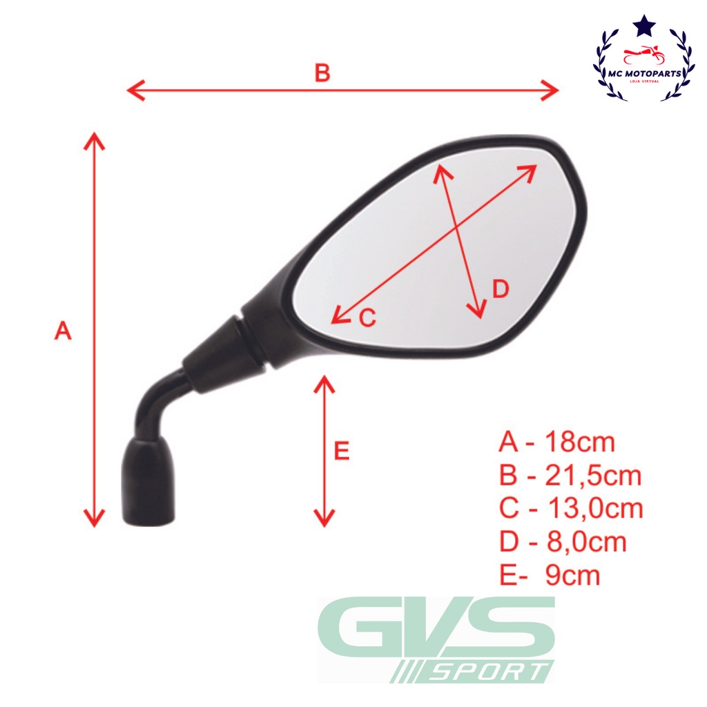 Retrovisor GVS BMW GS650/F800 Haste Curta Fixa Rosca Padrão Honda Lente Plana