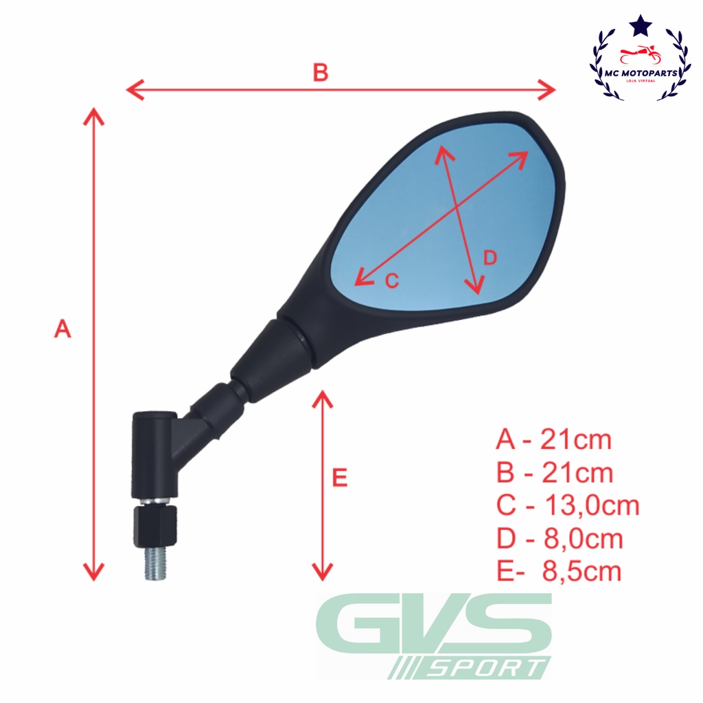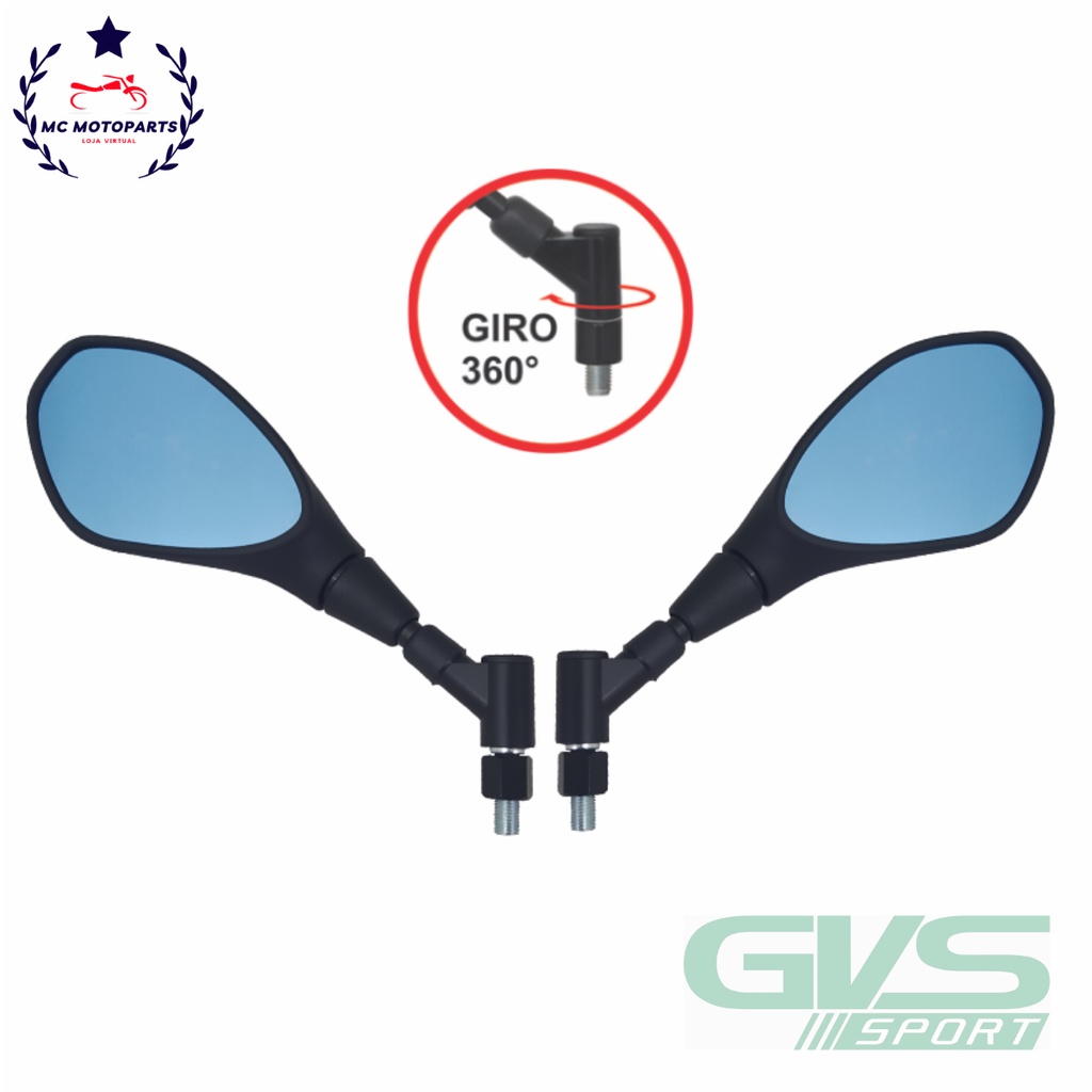 Retrovisor GVS BMW GS650/F800 Giro 360° Rosca Padrão Yamaha Lente Convexa Azul