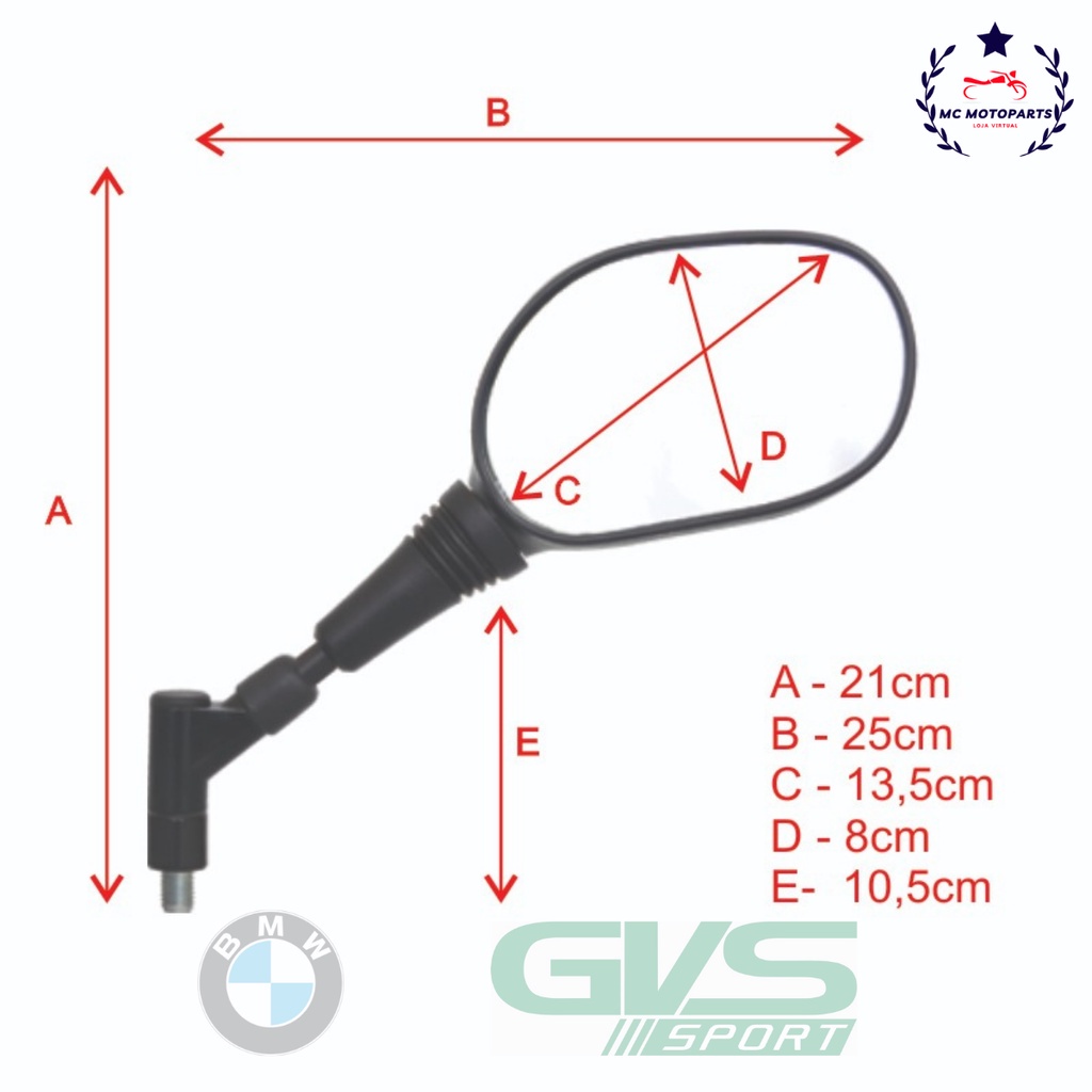 Retrovisor Espelho GVS XT660 Giro 360° Yamaha Lente Convexa