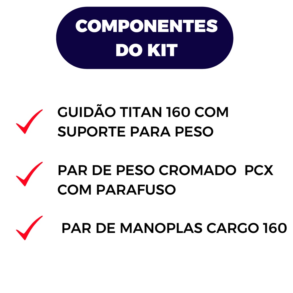 Guidão Titan 160 C/ Peso PCX Cromado e Manopla Cargo 160