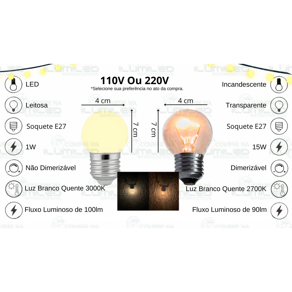 Varal De Luzes Até 20 Metros Com LED Ou Incandescente Lâmpadas Cordão Bivolt Resistente à Chuva Luz