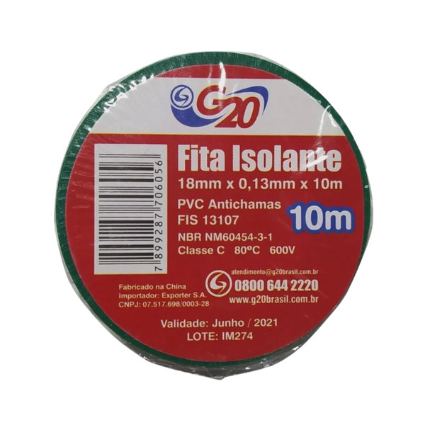 Kit 10 Fita Isolante Uso Geral Verde G20 10 metros