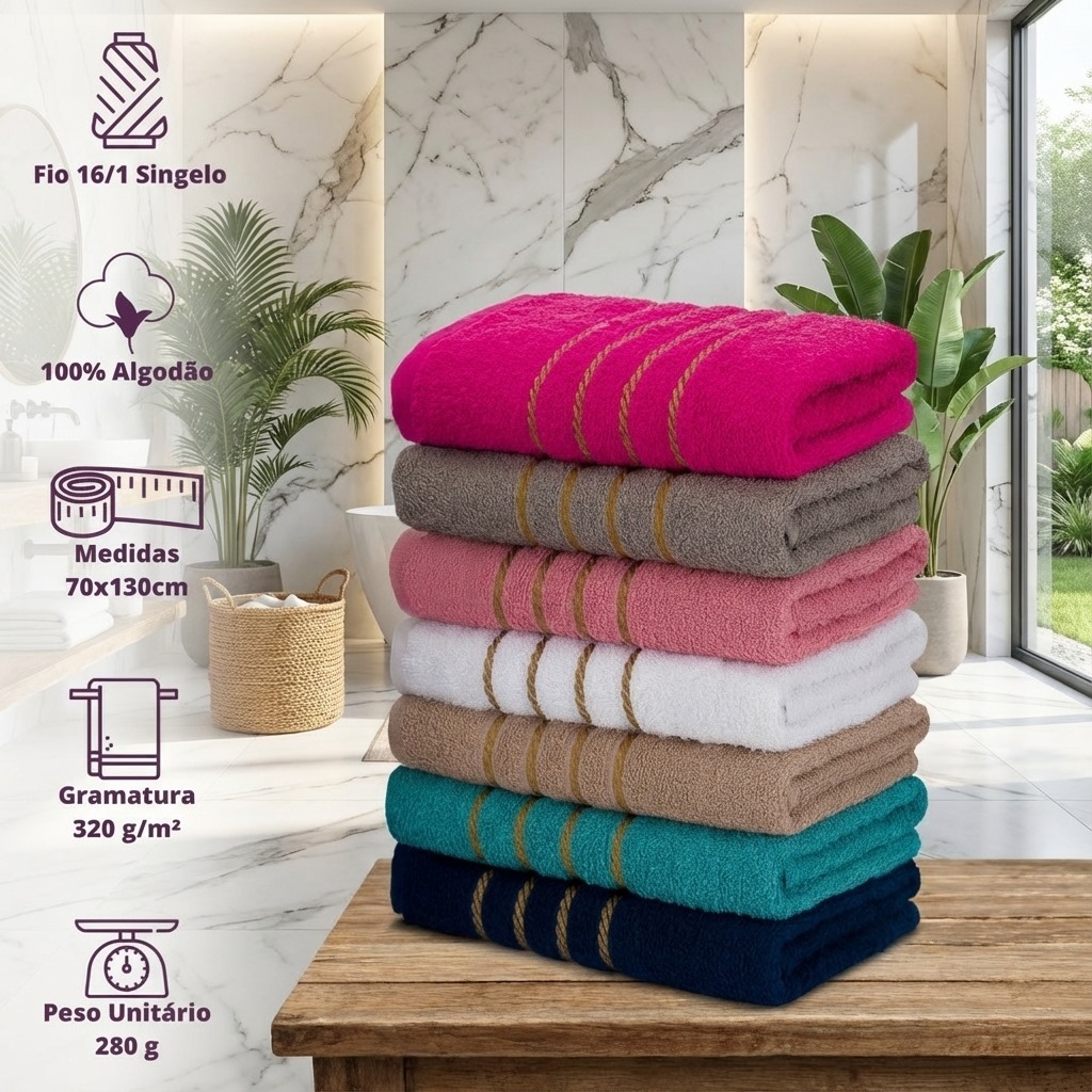 Kit 3 Toalha de Banho Banhão Luxo Imperial Gold 100% Algodão