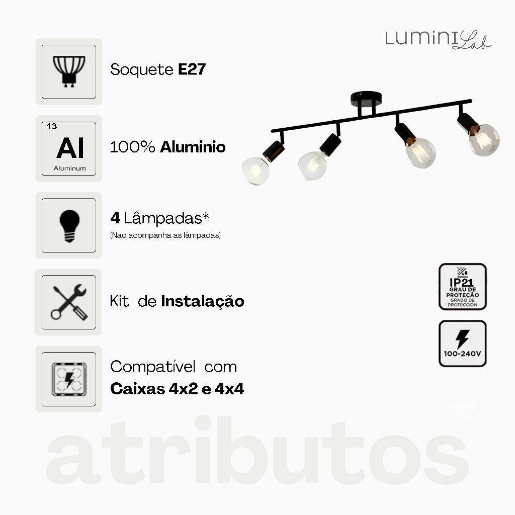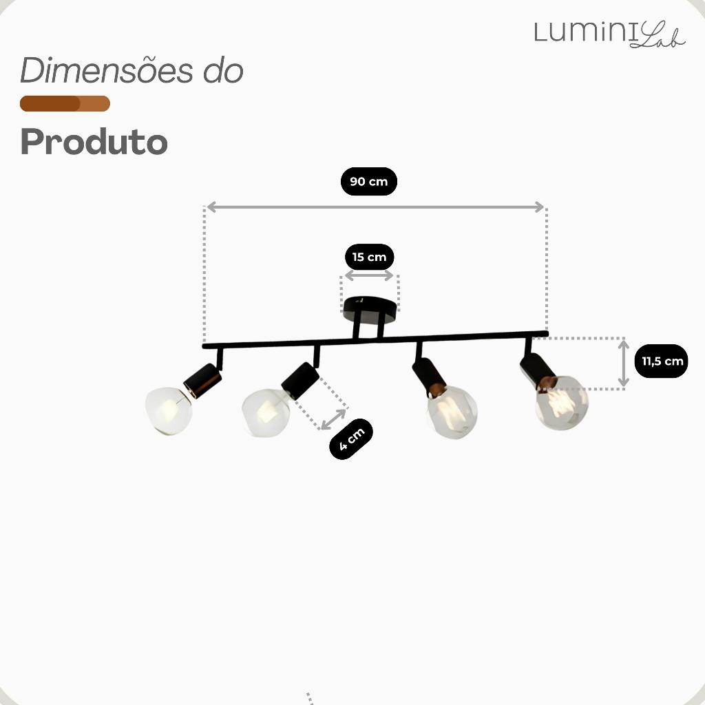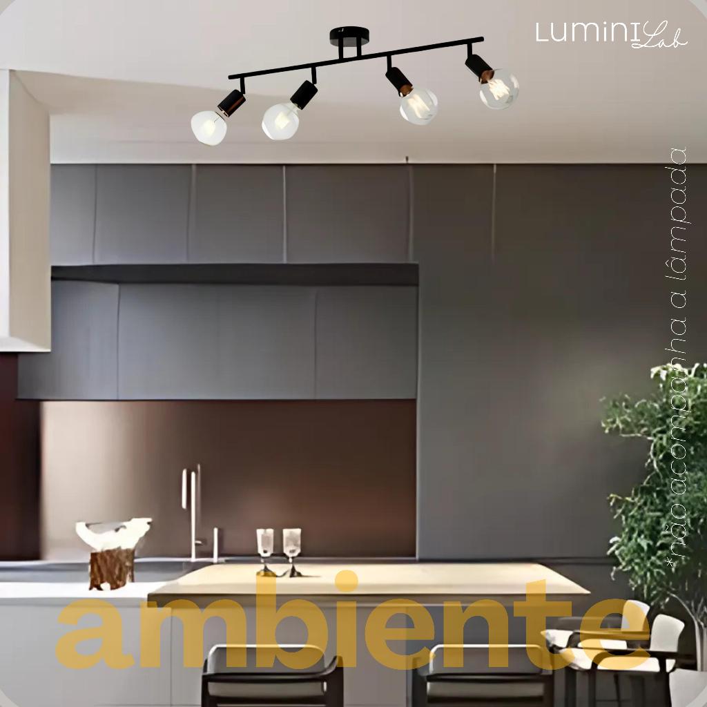 Luminária de teto Trilho Spot Koppla 4 Lâmpadas Moderno Industrial