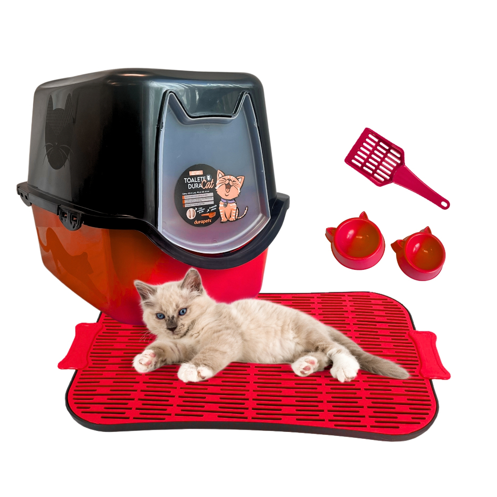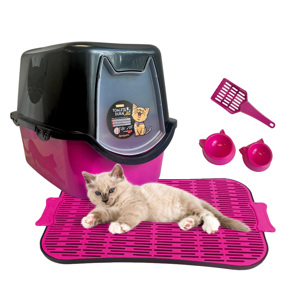 Caixa de Areia Banheiro De Gato Fechado Durapets + Tapete Limpa Patas