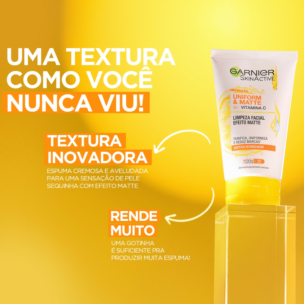 Kit Rotina Completa Garnier Anti-manchas Uniform&Matte Vitamina C - Limpeza Facial + Serum Antimarcas, 15ml