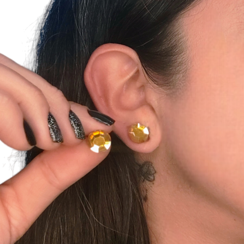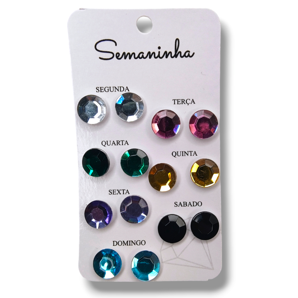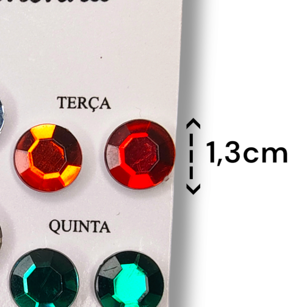 Brincos Femininos Botão 1,3cm De Cristal Colorido Cartela Semaninha Com 7 Pares Sortidos