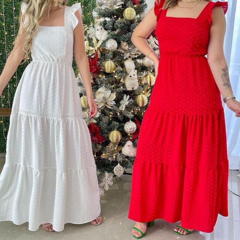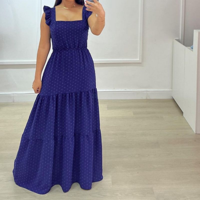 Vestido Longo Luxo com babada na manga 0863