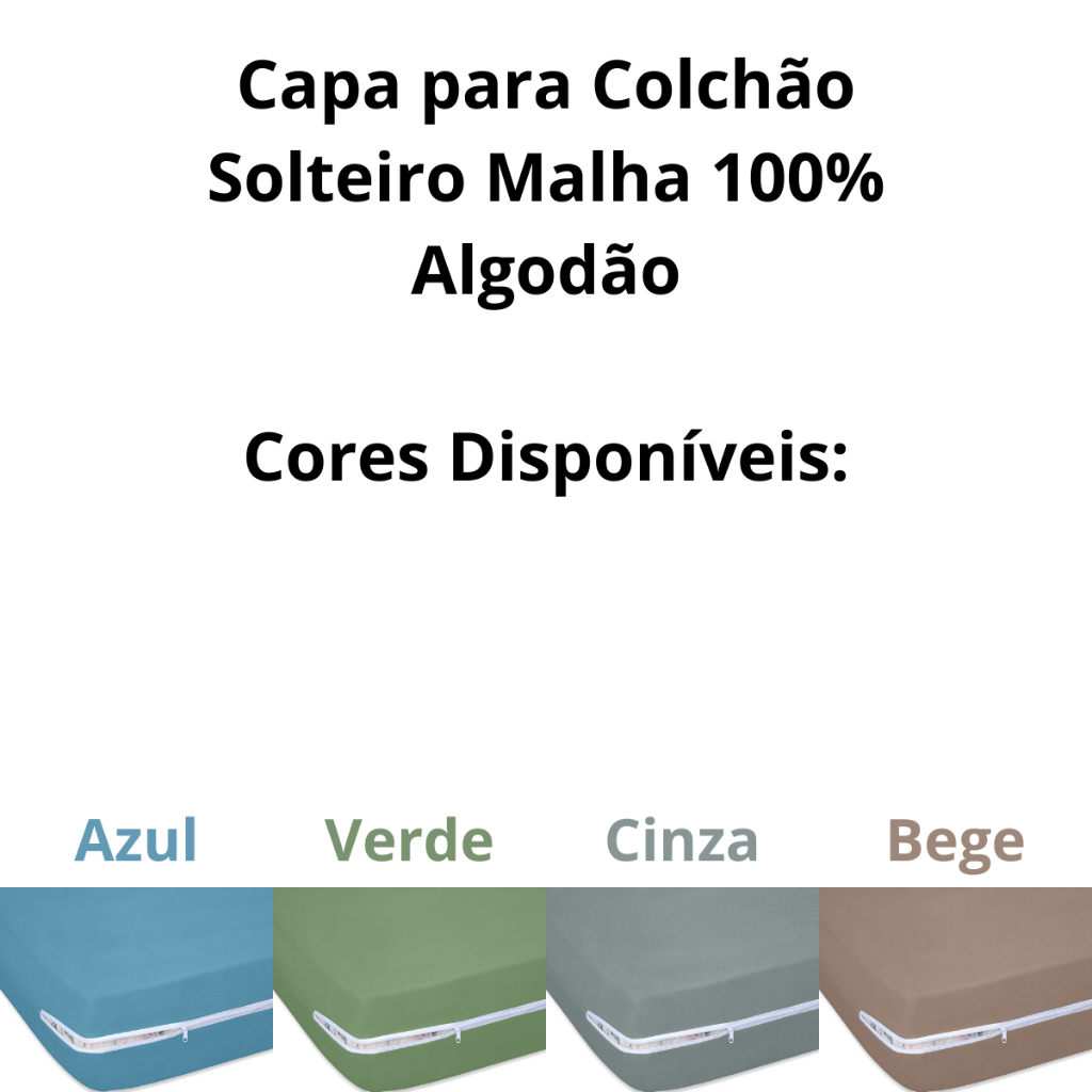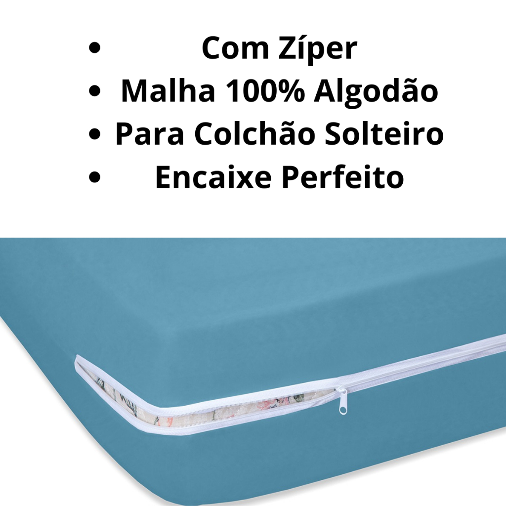 Capa Colchão Solteiro Com Zíper Malha 100% Algodão