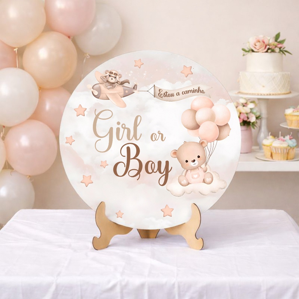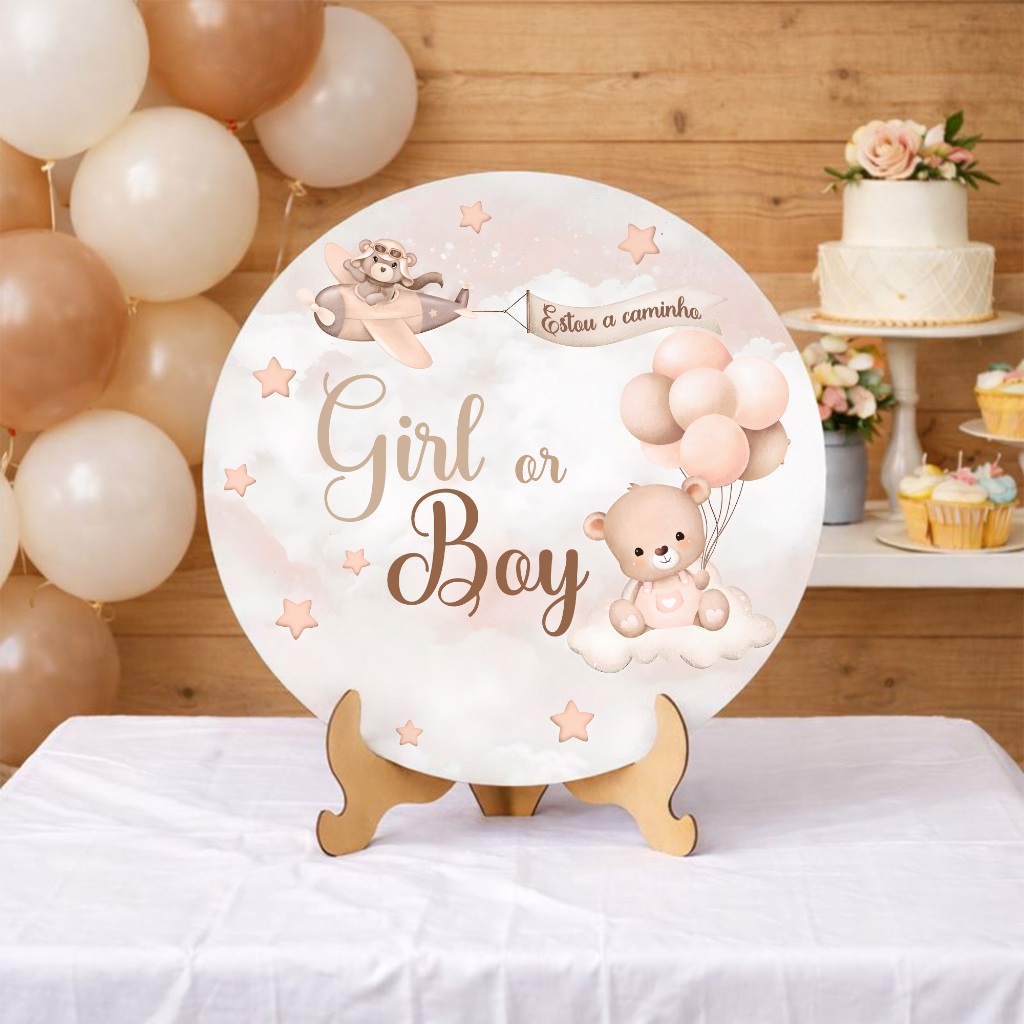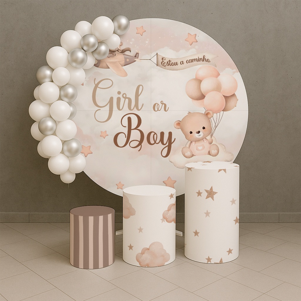 Kit Capas Painel Redondo + Cilindros Festa Menino ou Menina Marrom Urso Comemoração REF 206