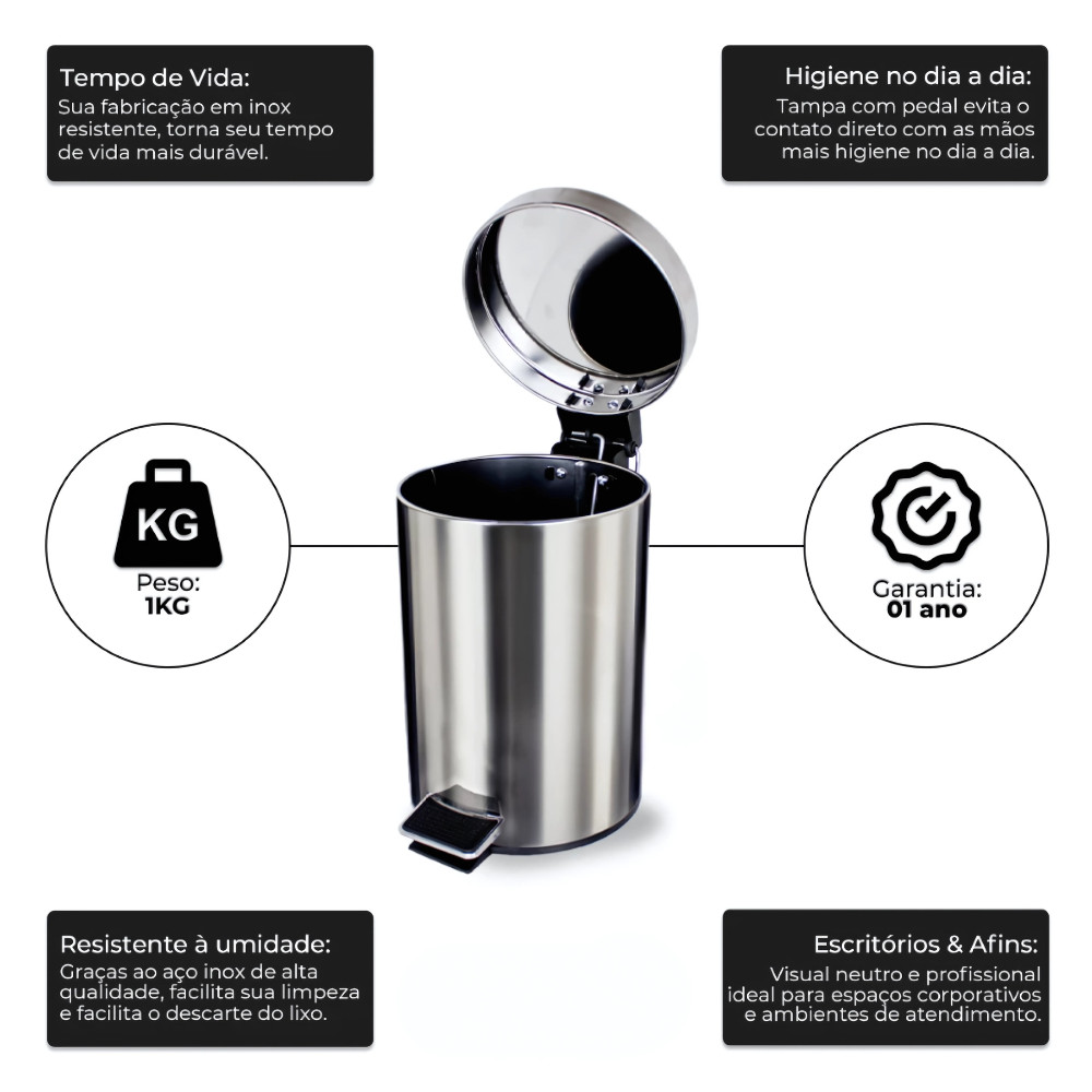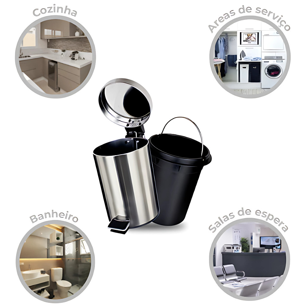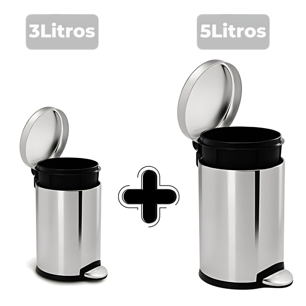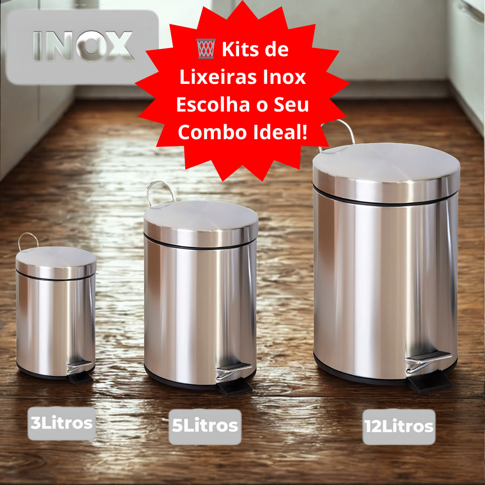 Kit de Lixeiras Inox com Pedal e Balde Interno – Combos Variados 3L, 5L e 12L