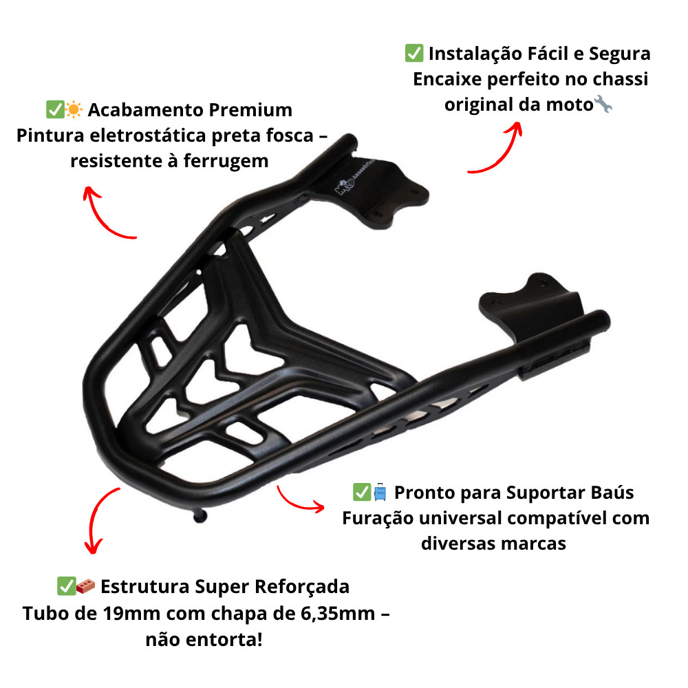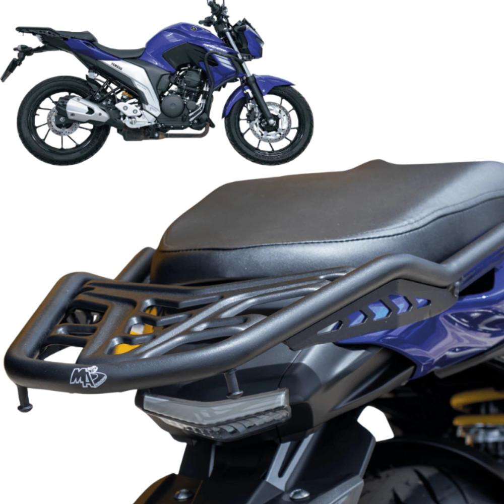 Bagageiro Reforçado Fazer FZ25 2018 a 2025 Preto Fosco MA – Suporte Baú Alta Resistência