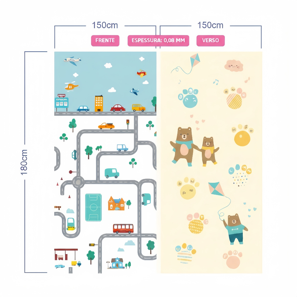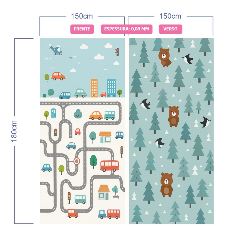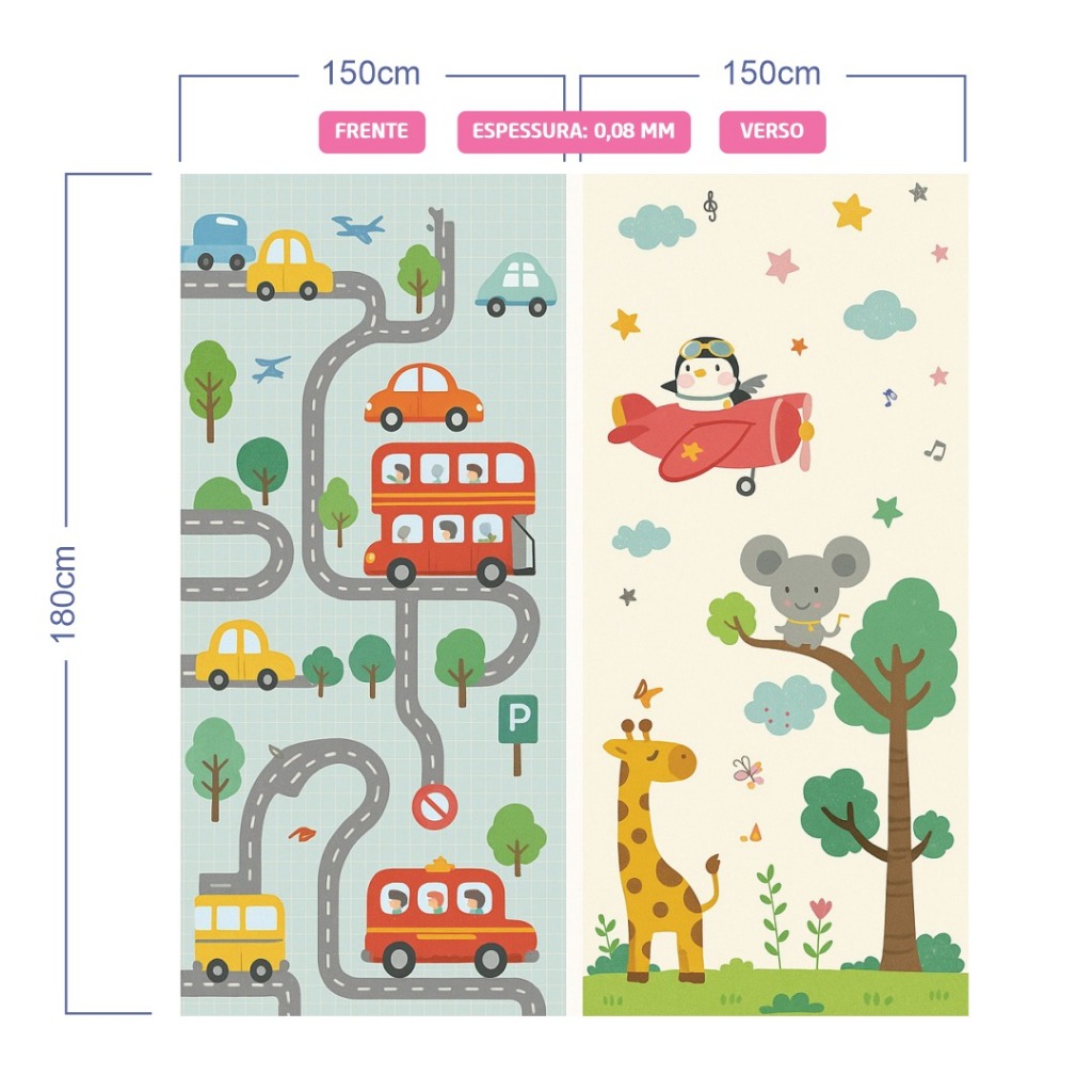 Tapete Tatame Infantil Emborrachado Dupla Face 2*1.5M/1.8*1.5M 1mm Térmico e Antiderrapante