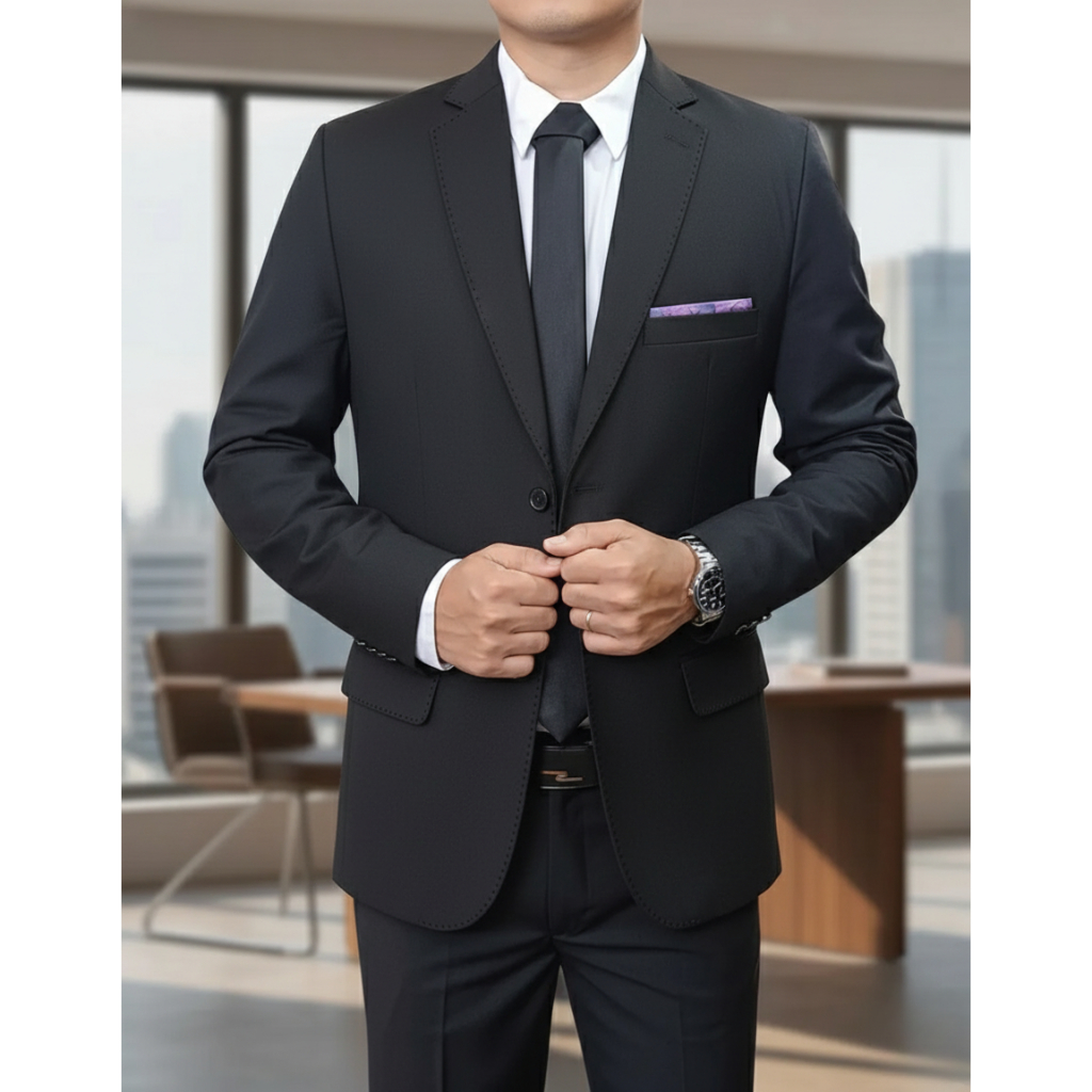 Terno Social De Luxo Slim Poliviscose Pesponto Lapela Premium