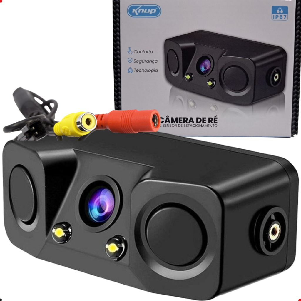 Câmera De Ré Com 2 Sensores Estacionamento Infravermelho Bip SENSOR DE RÉ + camera noturna com Led