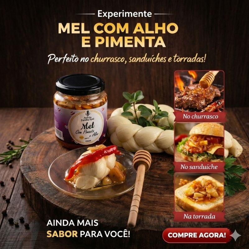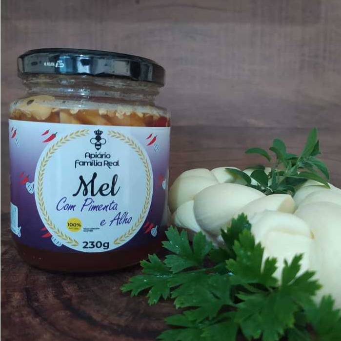 Mel com Alho e Pimenta Artesanal 260g- Molho Gourmet Agridoce Picante para Churrasco, Hambúrguer, Torradas, Carne Assada