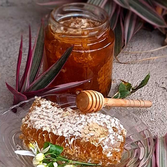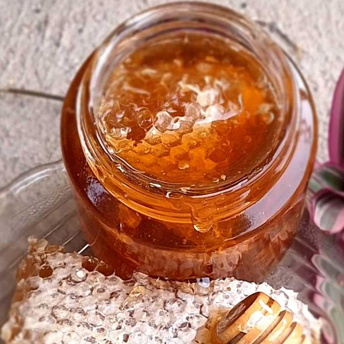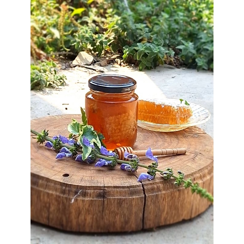 Mel no favo pote de vidro 300gr +colher meleira. Mel cru, 100% puro direto do produtor..