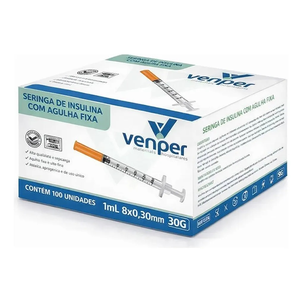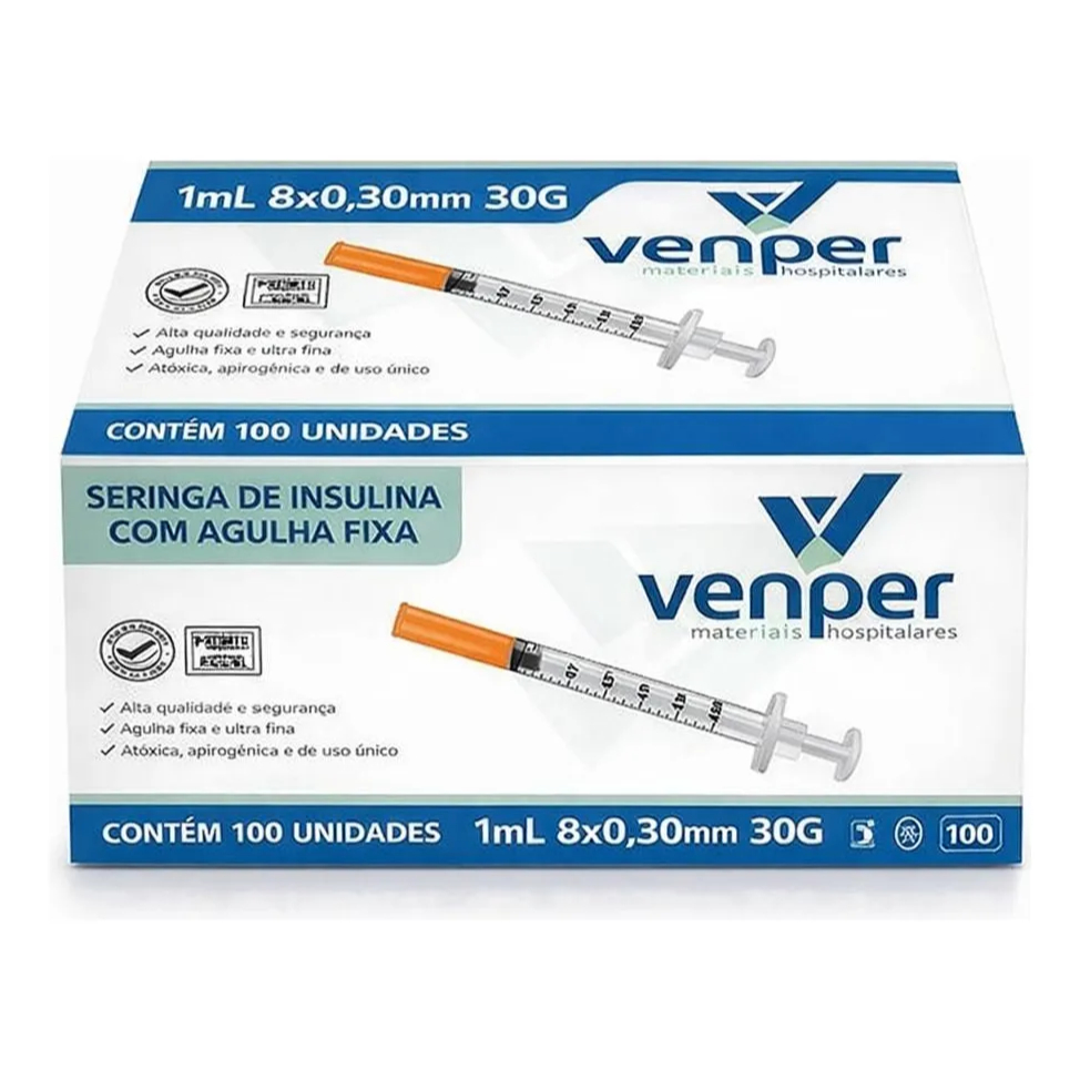 Seringa insulina 1ml com Agulha Fixa ULTRA FINA 8mmx0,30 (30G) - VP