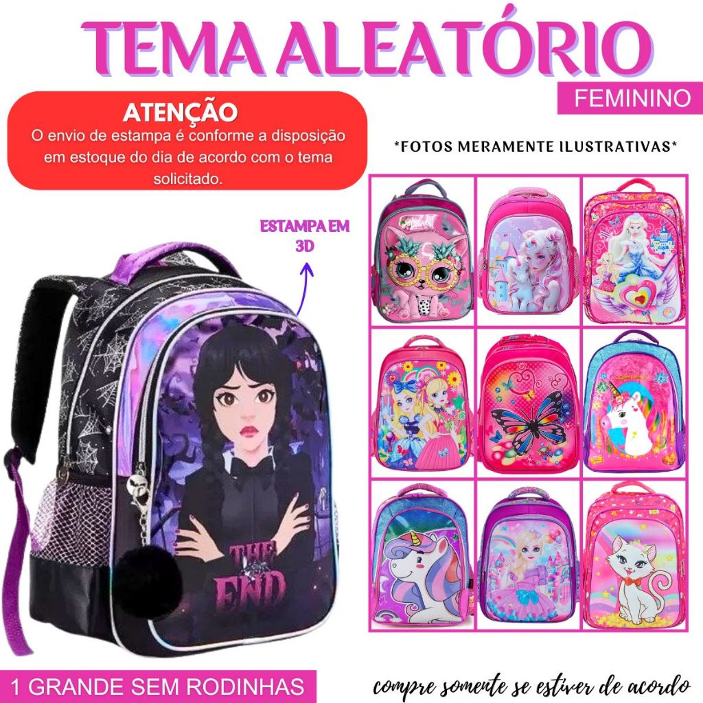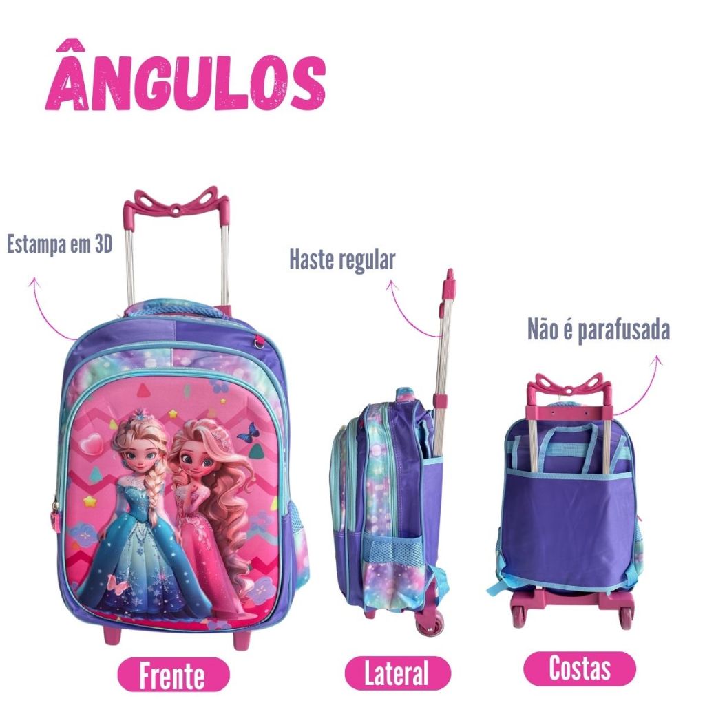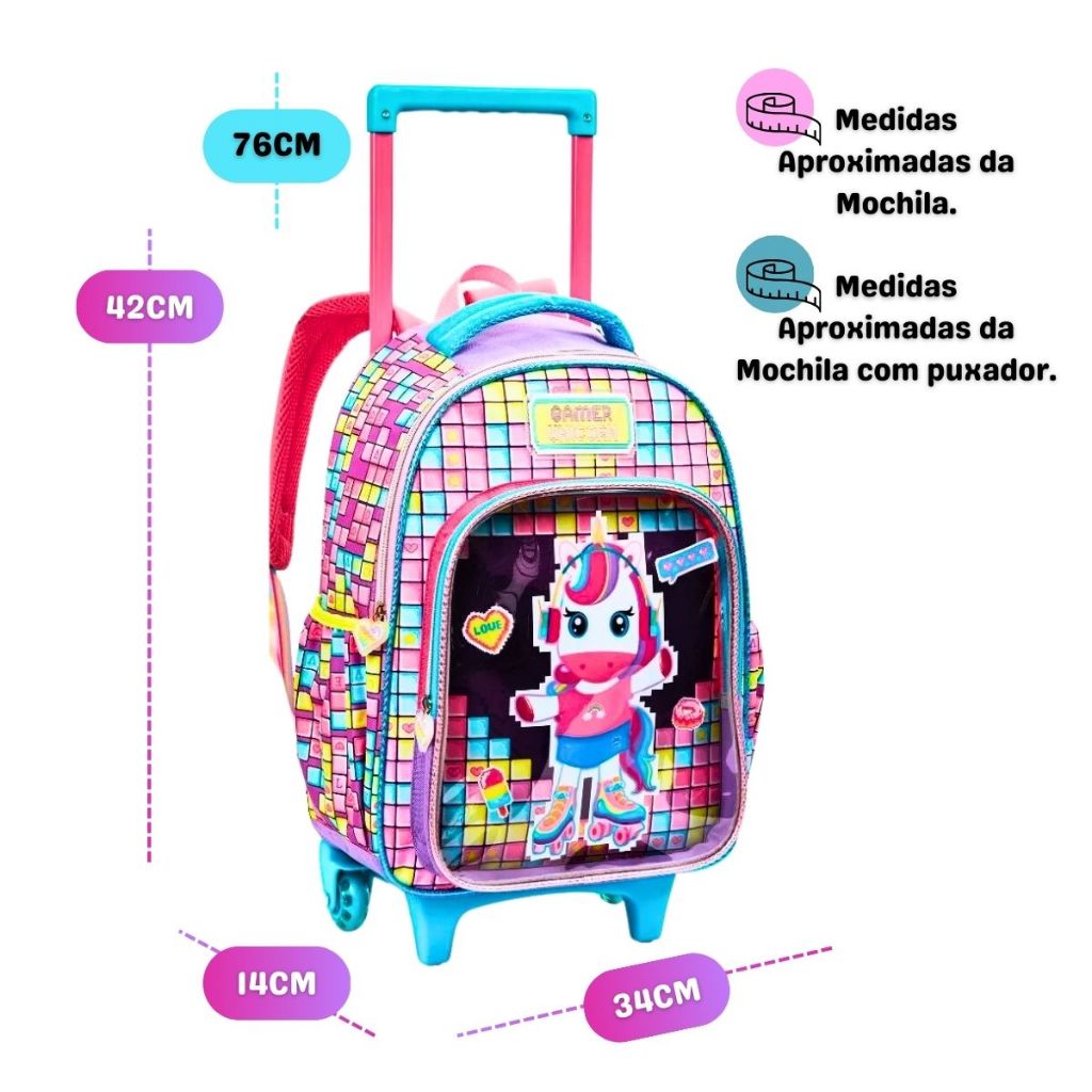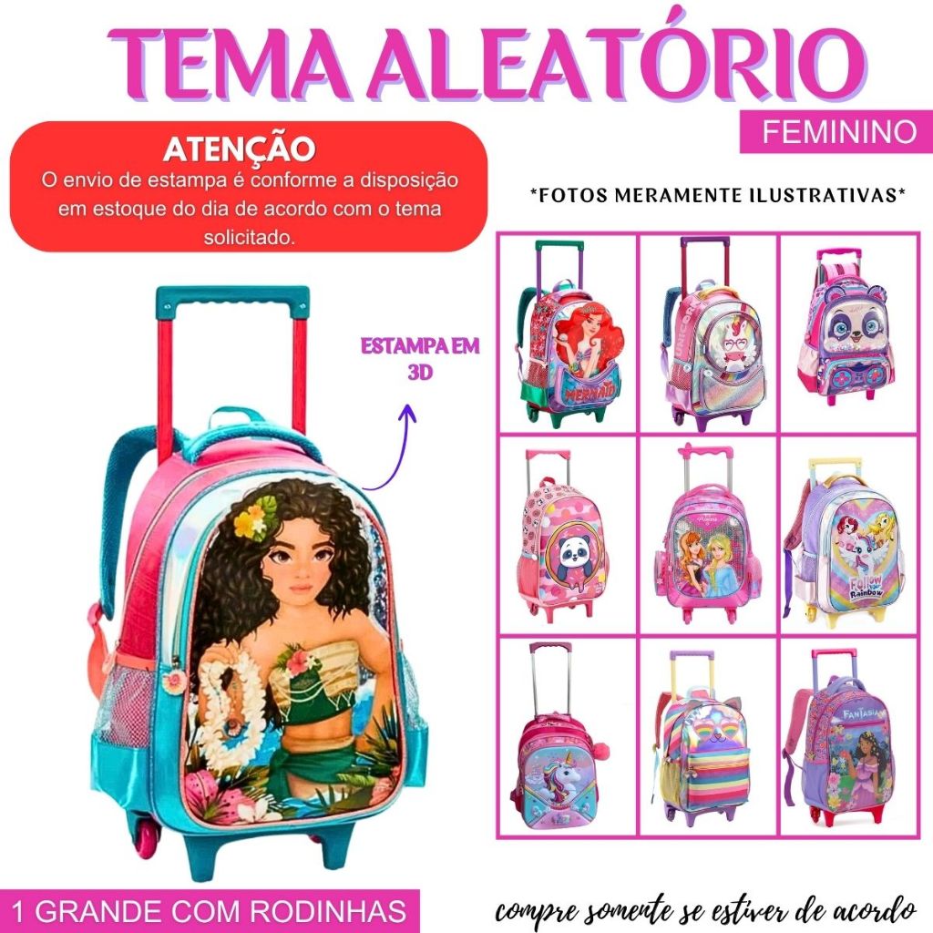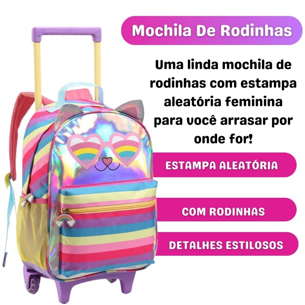 Kit Mochila Infantil 2 em 1 Com Carrinho Removível Menina Aleatória Linda Prática Grande