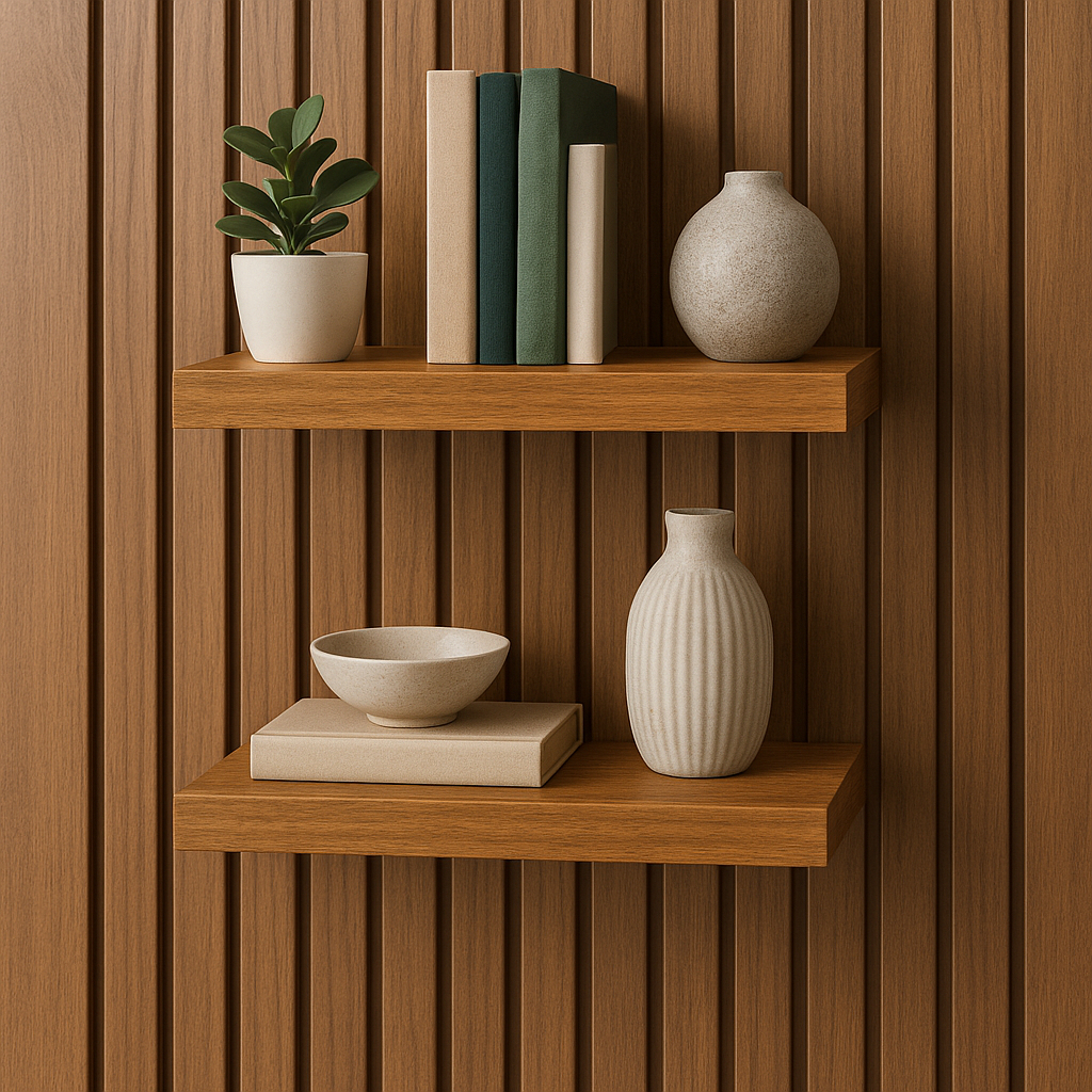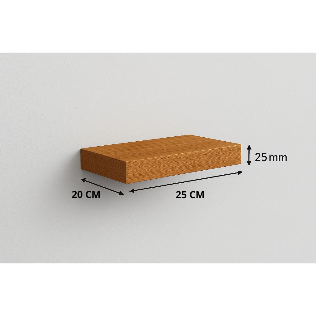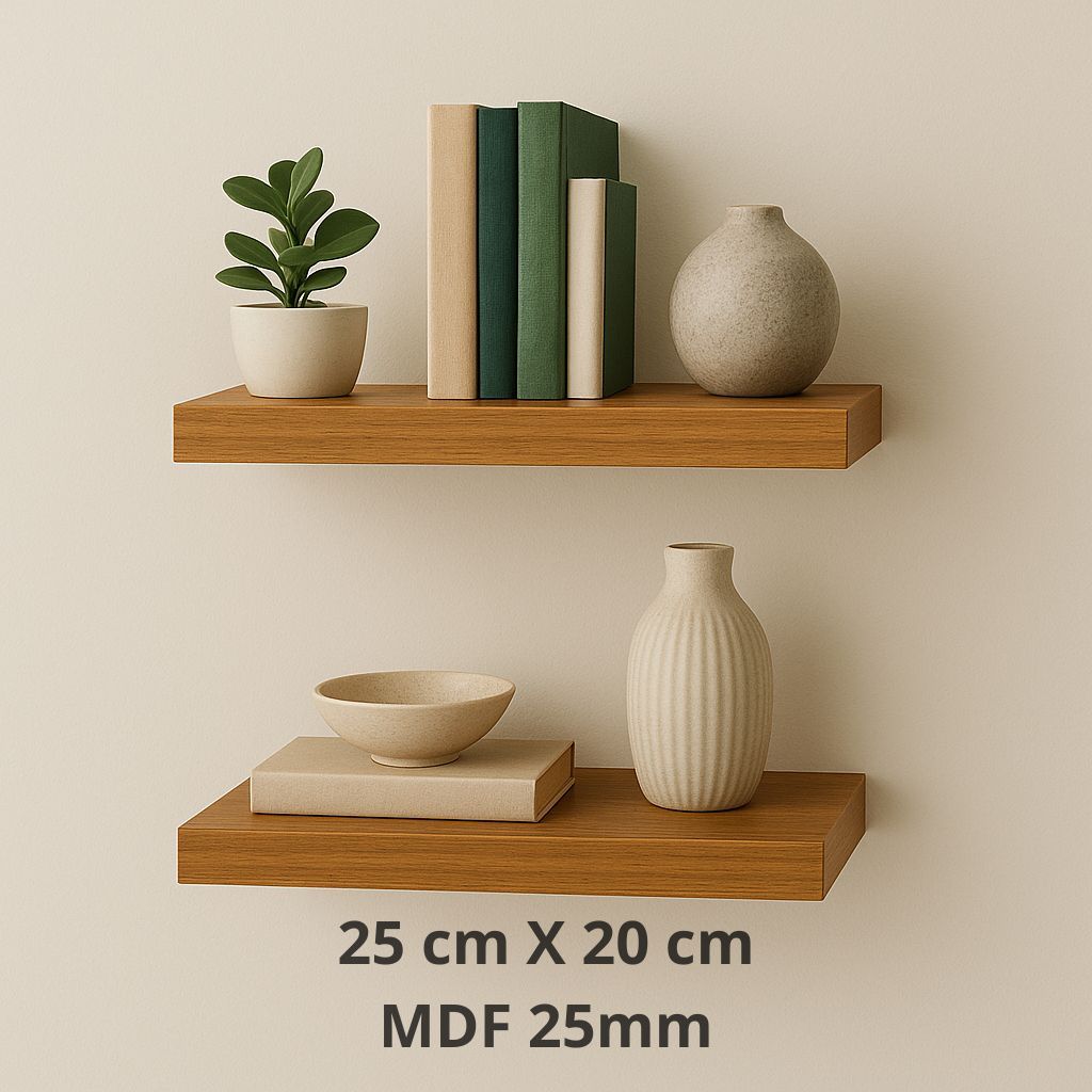 Prateleira 25x20 amadeirada freijó MDF 25mm com suporte invisível decorações quarto sala escritório