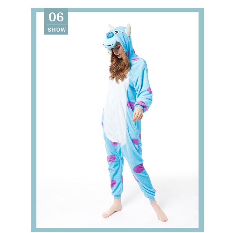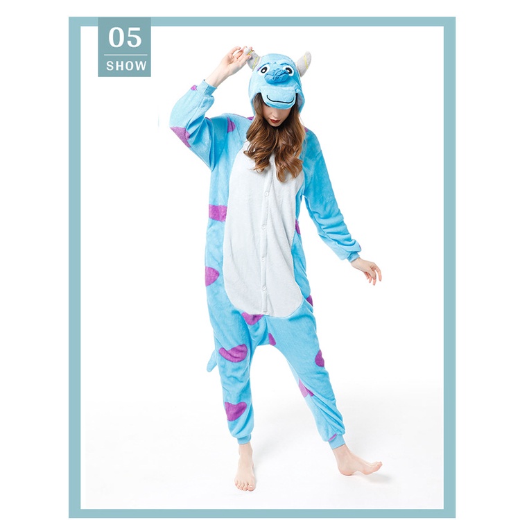 Kigurumi Animal Sulley Monstro Onesie Unicórnio Tigre Pijama Flanela Dos Desenhos Animados Trajes Do Partido Macacões