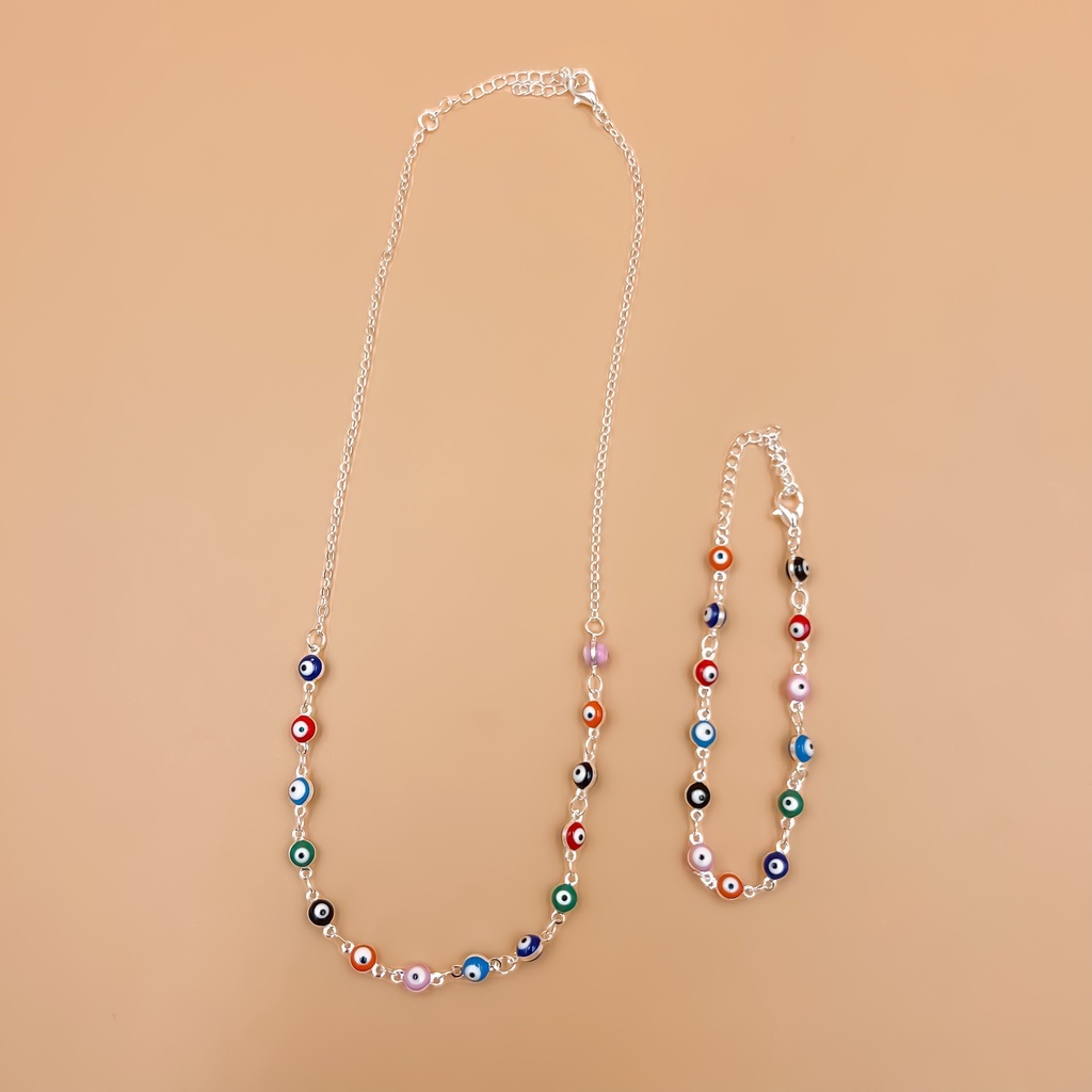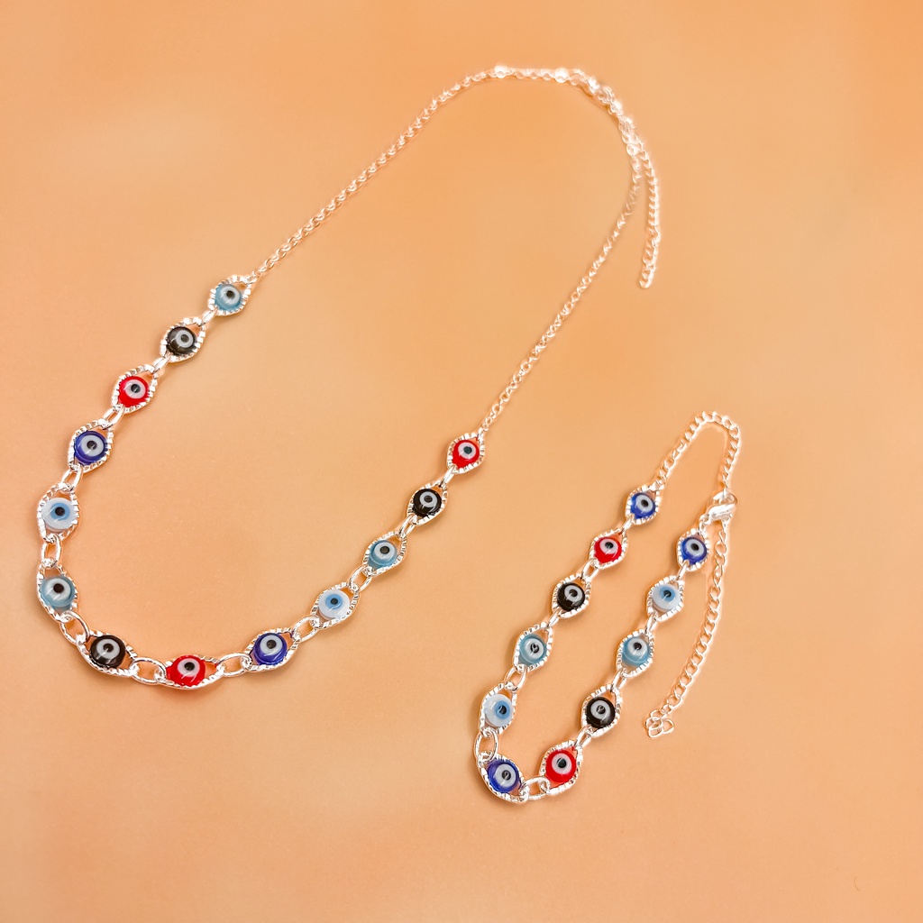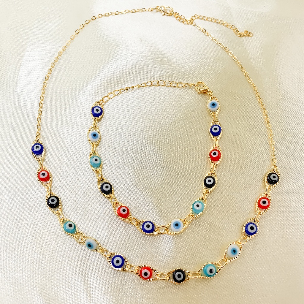 Kit Colar e Pulseira olho grego colorido Banhada a Prata 925 Feminino