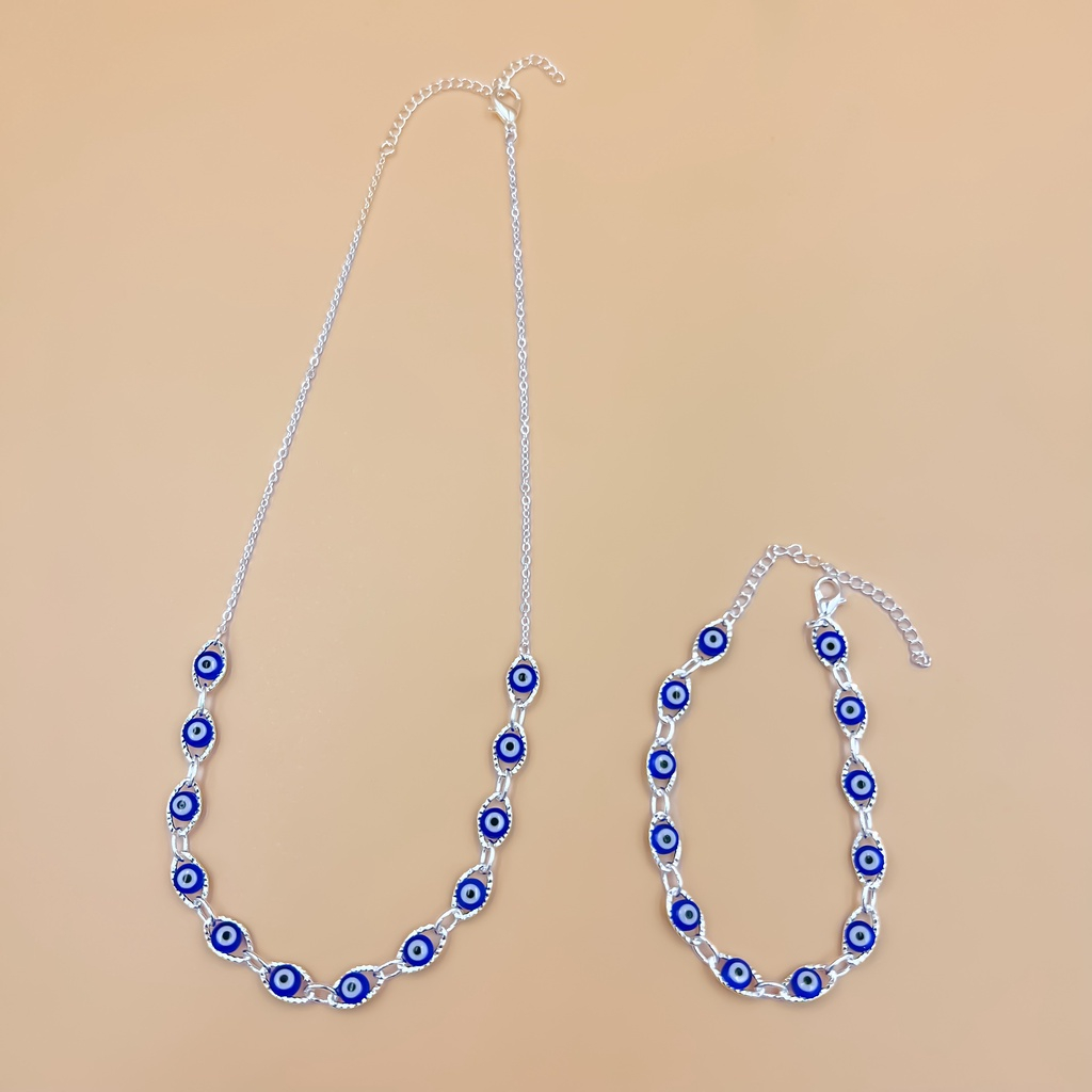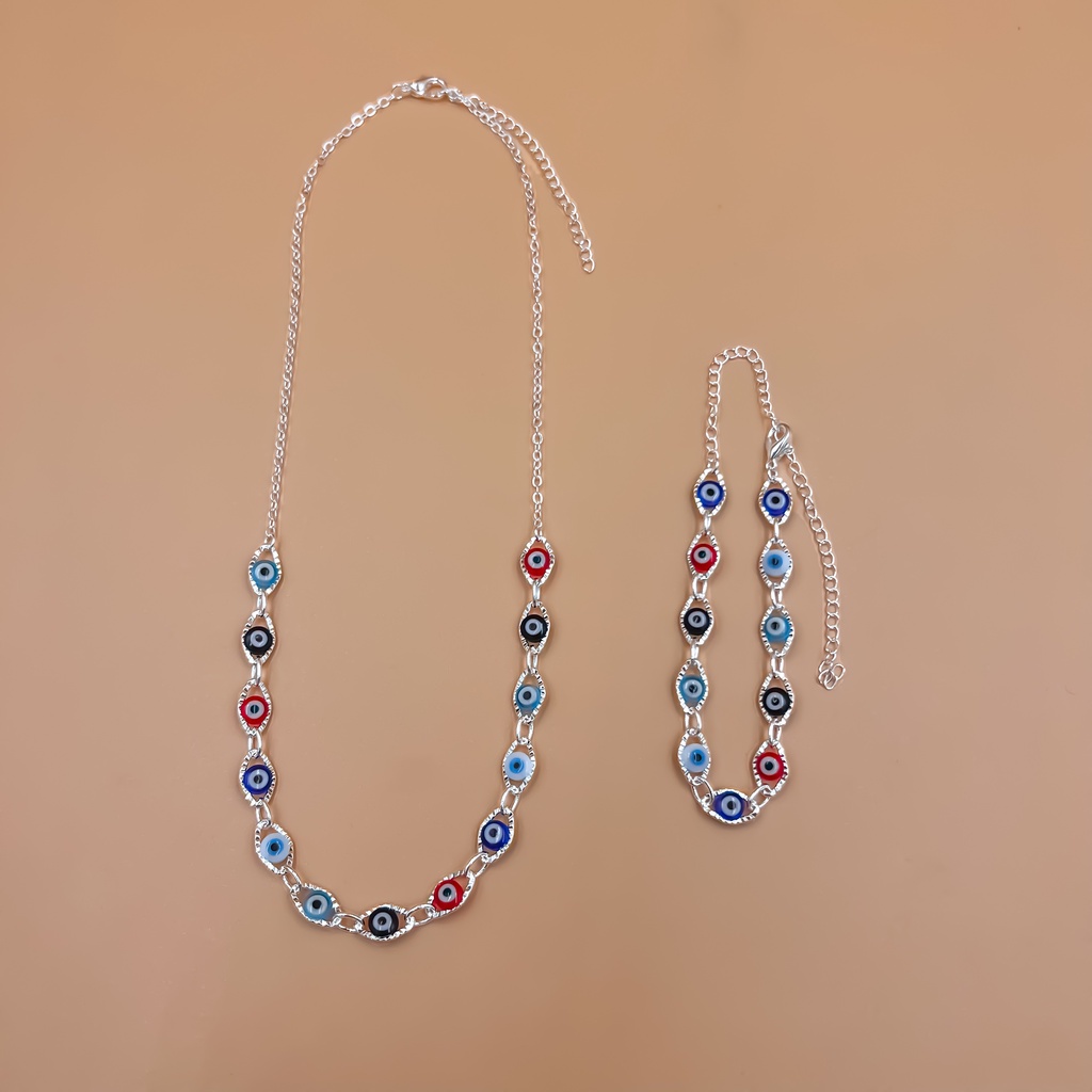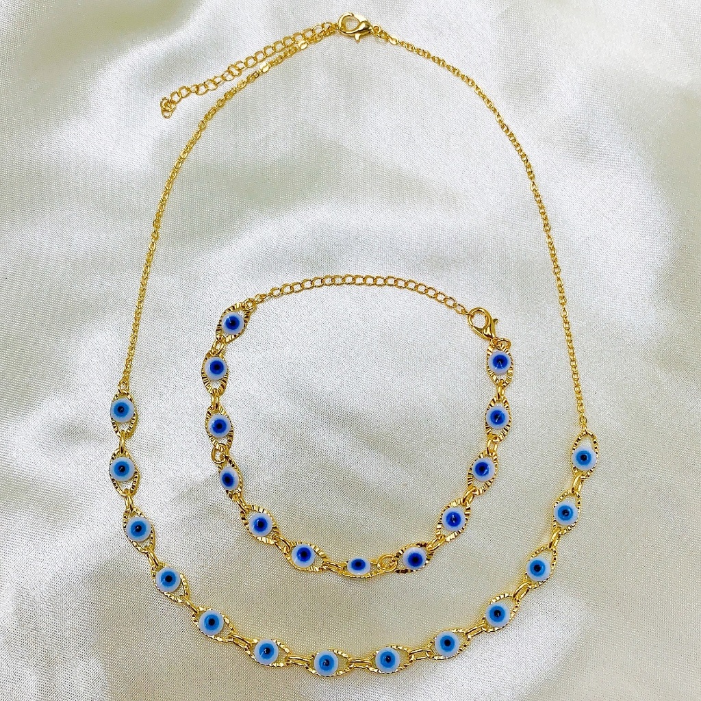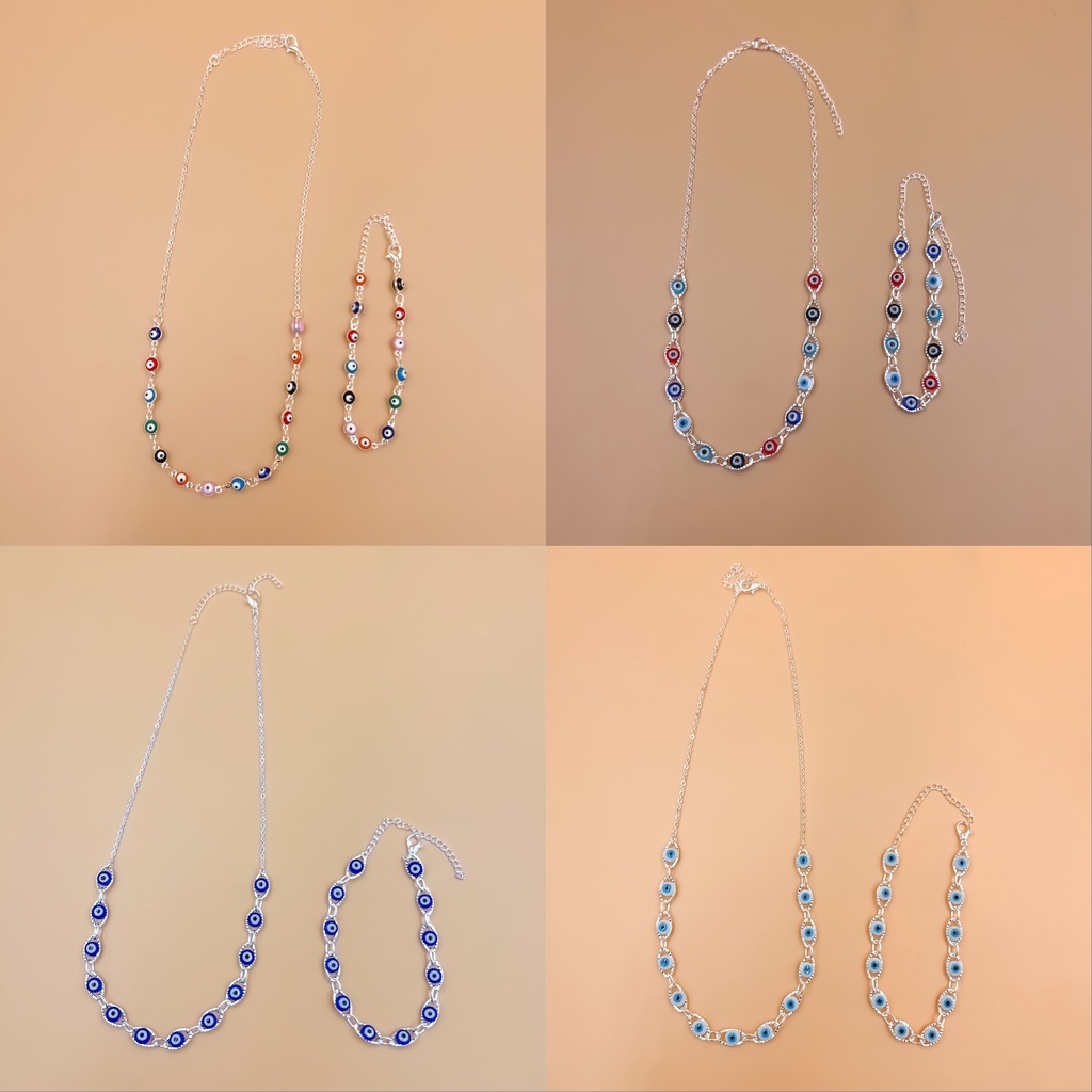 Kit Colar e Pulseira olho grego colorido Banhada a Prata 925 Feminino