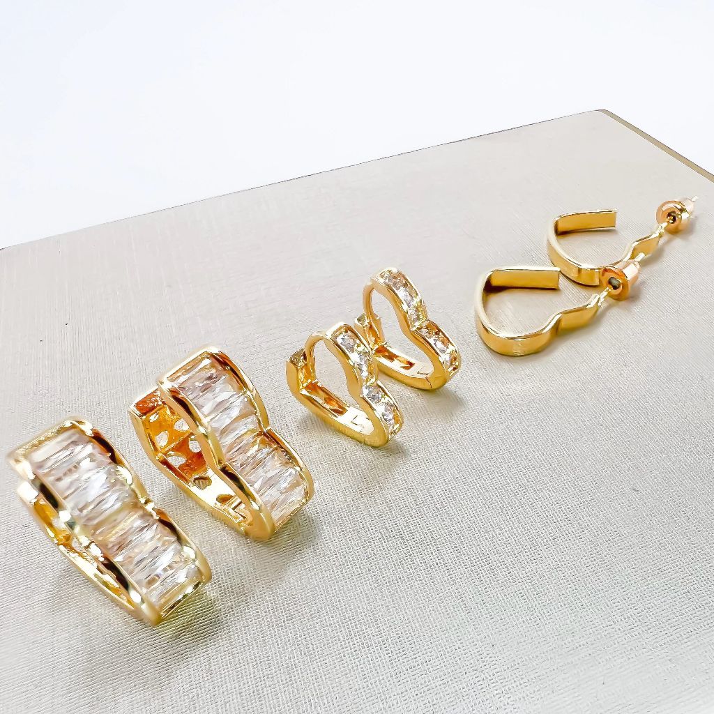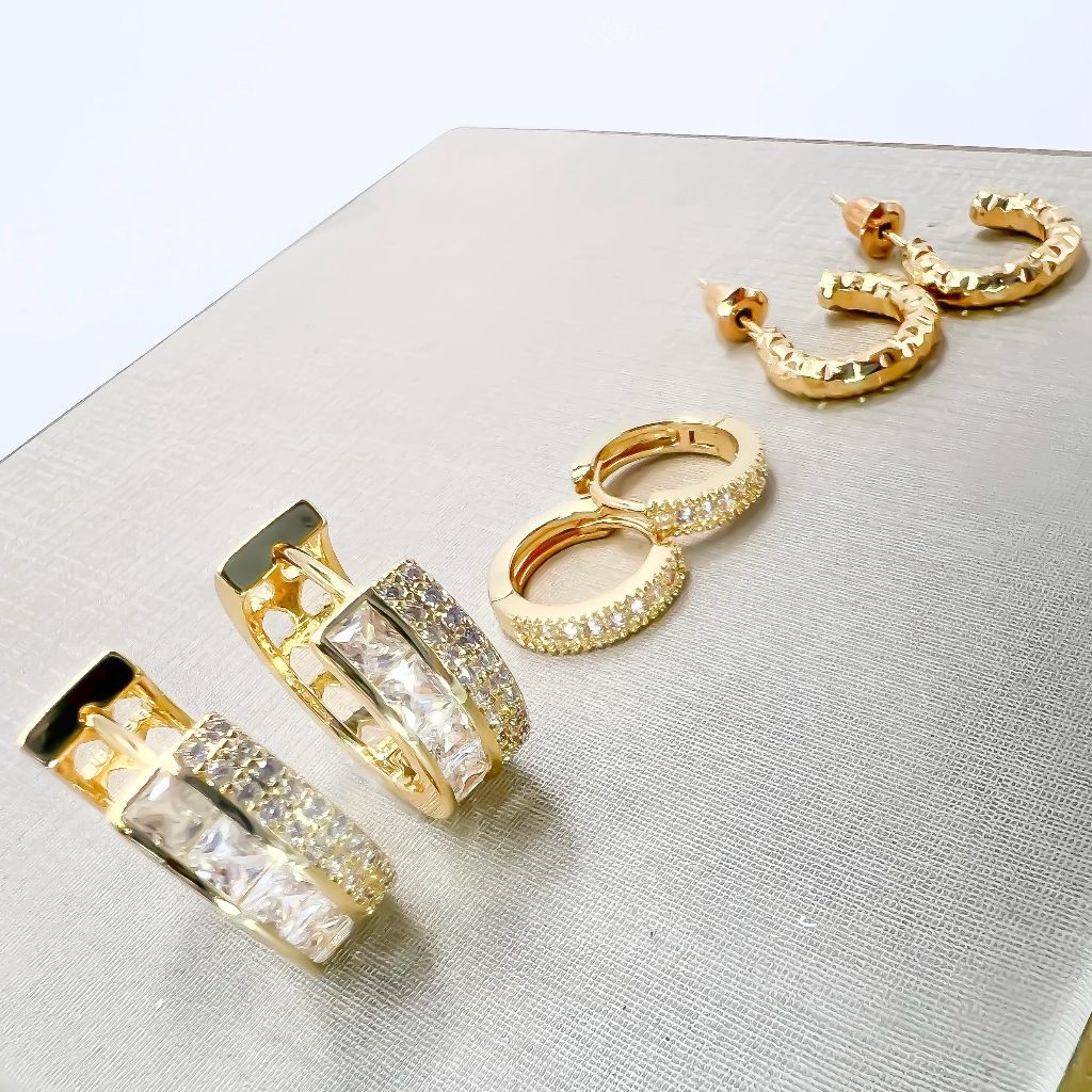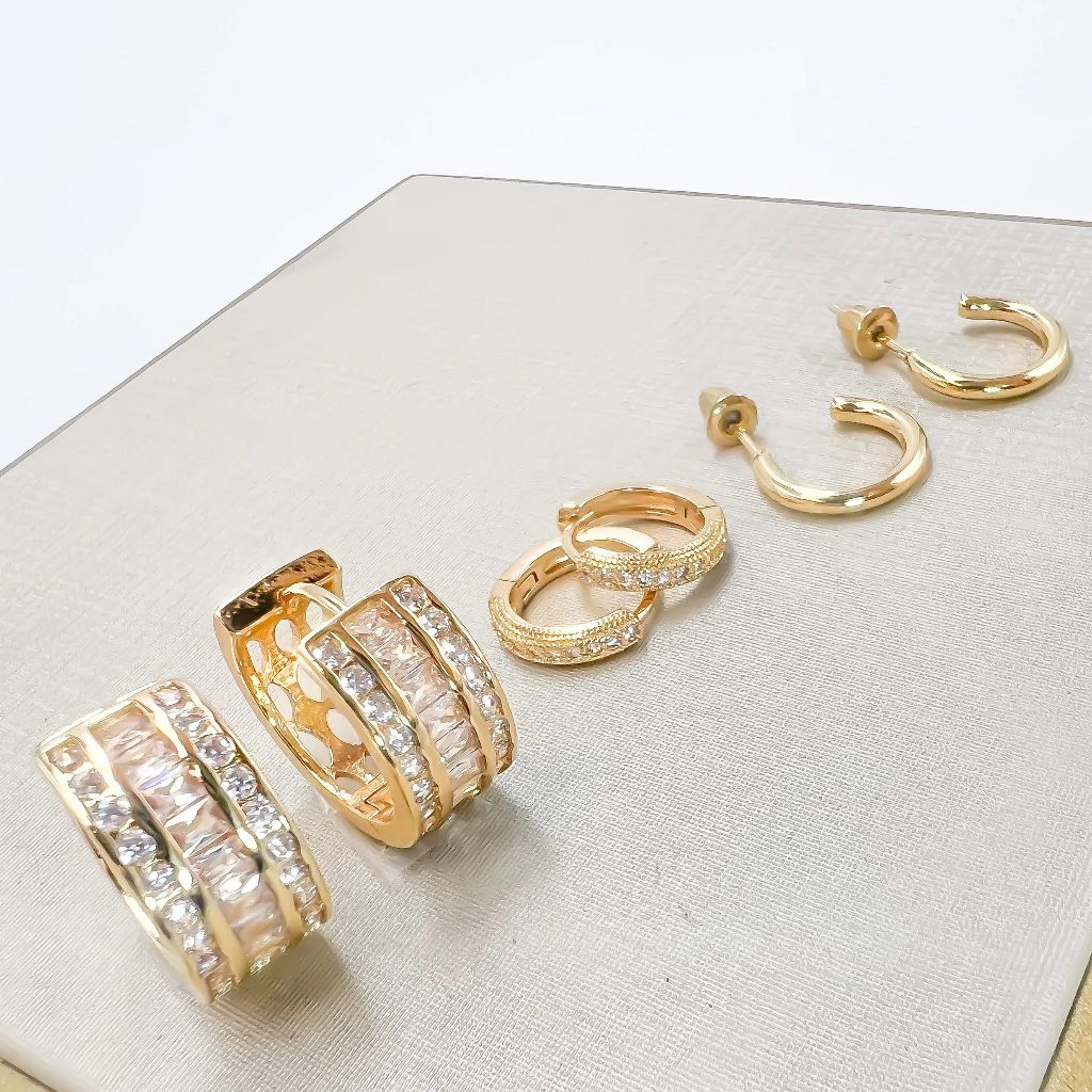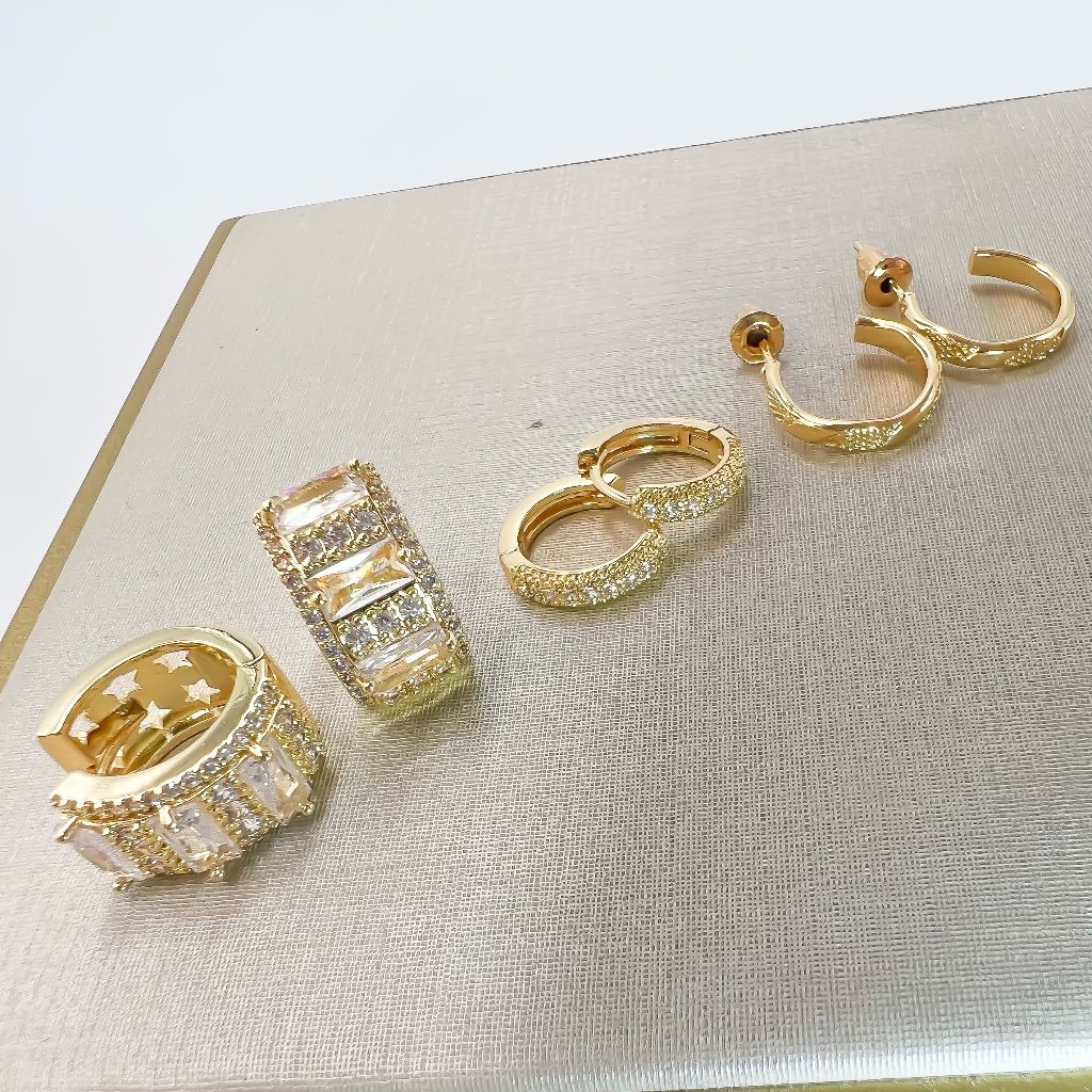 Kit 3 pares brincos femininos coracao e redondo cravejado pedra de zirconia folheado a ouro18k e prata 925