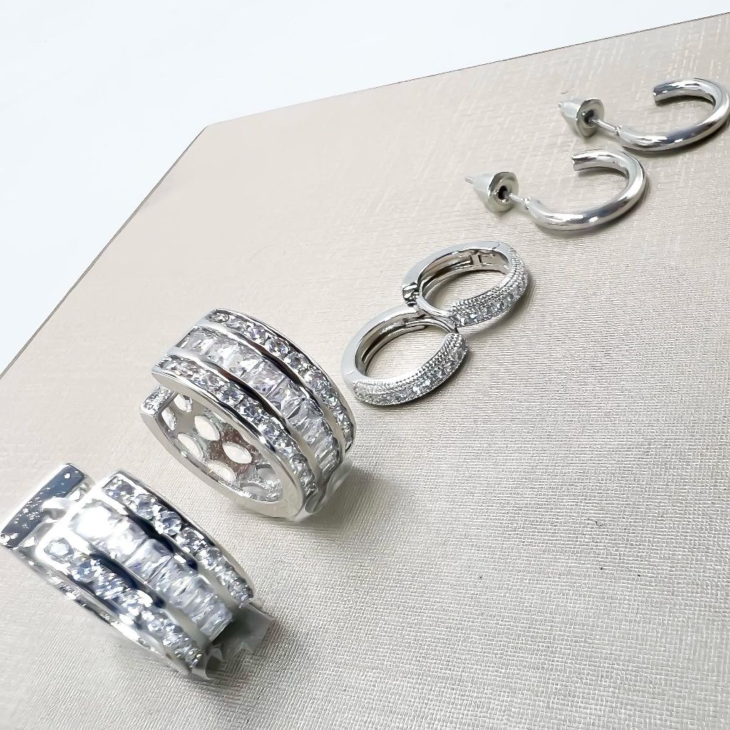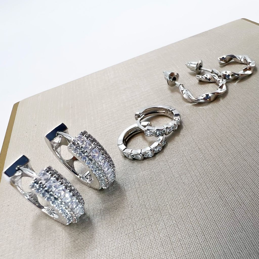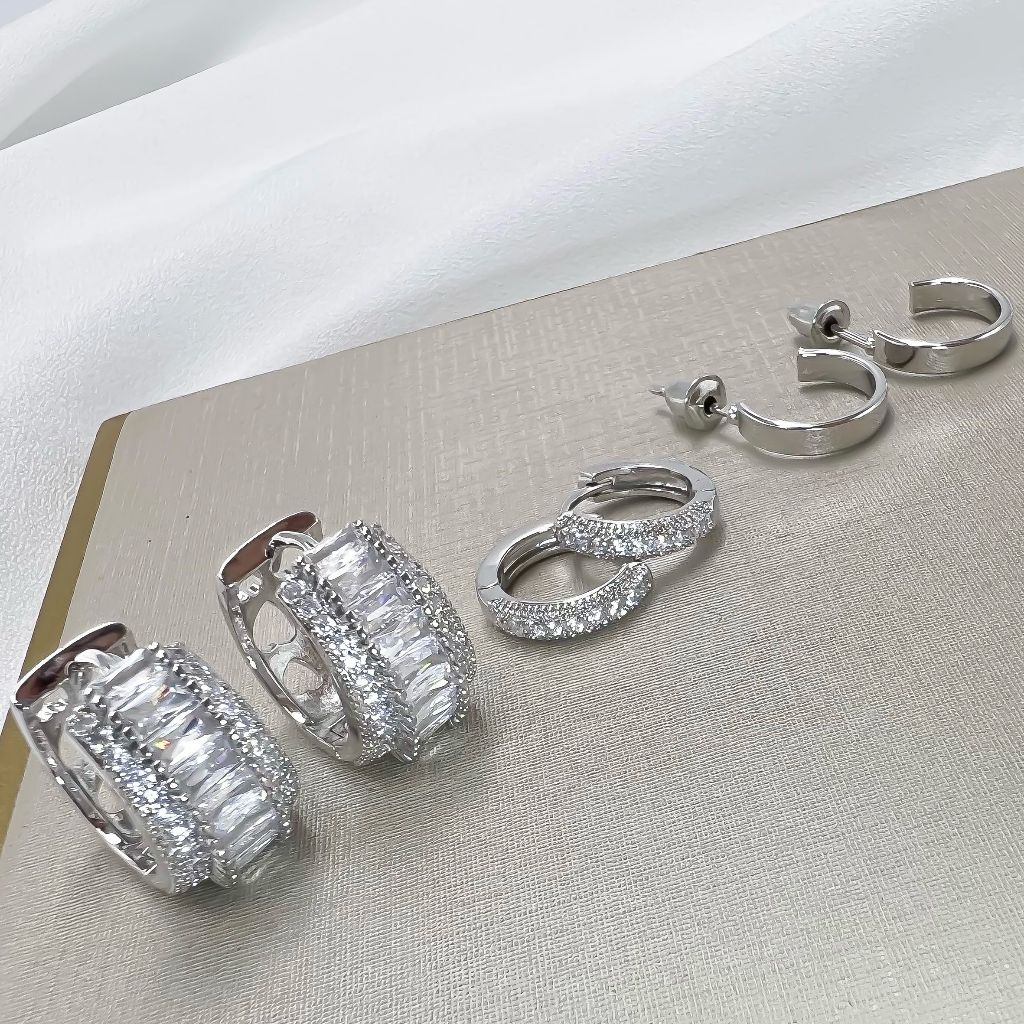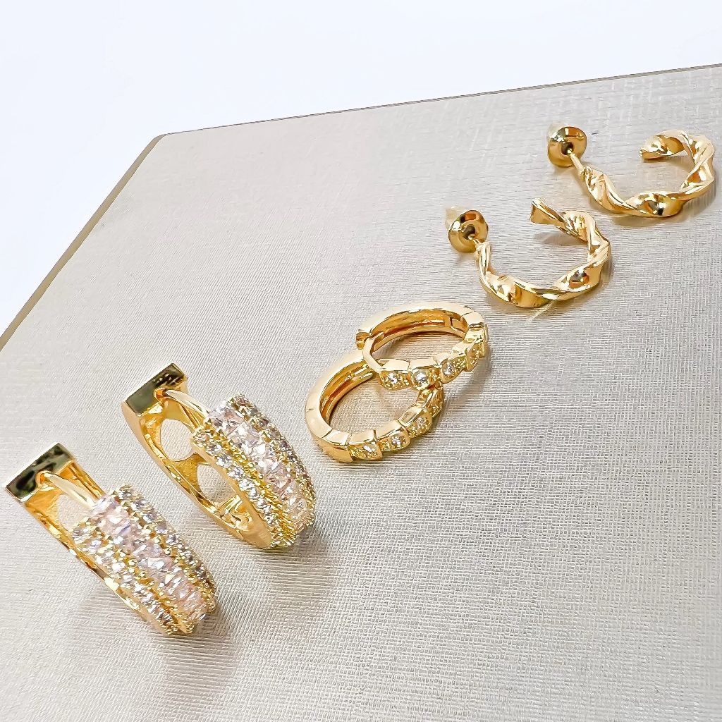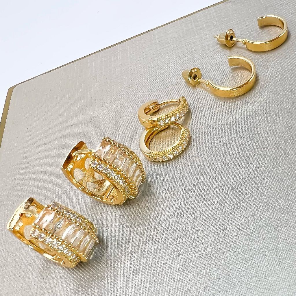 Kit 3 pares brincos femininos coracao e redondo cravejado pedra de zirconia folheado a ouro18k e prata 925