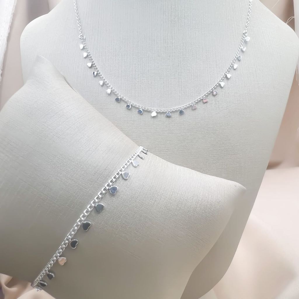 kit colar +pulseira coração Folheado prata 925 e ouro 18k