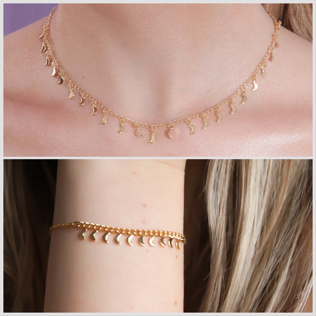Kit Gargantilha Choker e Pulseira Estrelinha cordão elos Folheado a ouro 18k e Prata 925