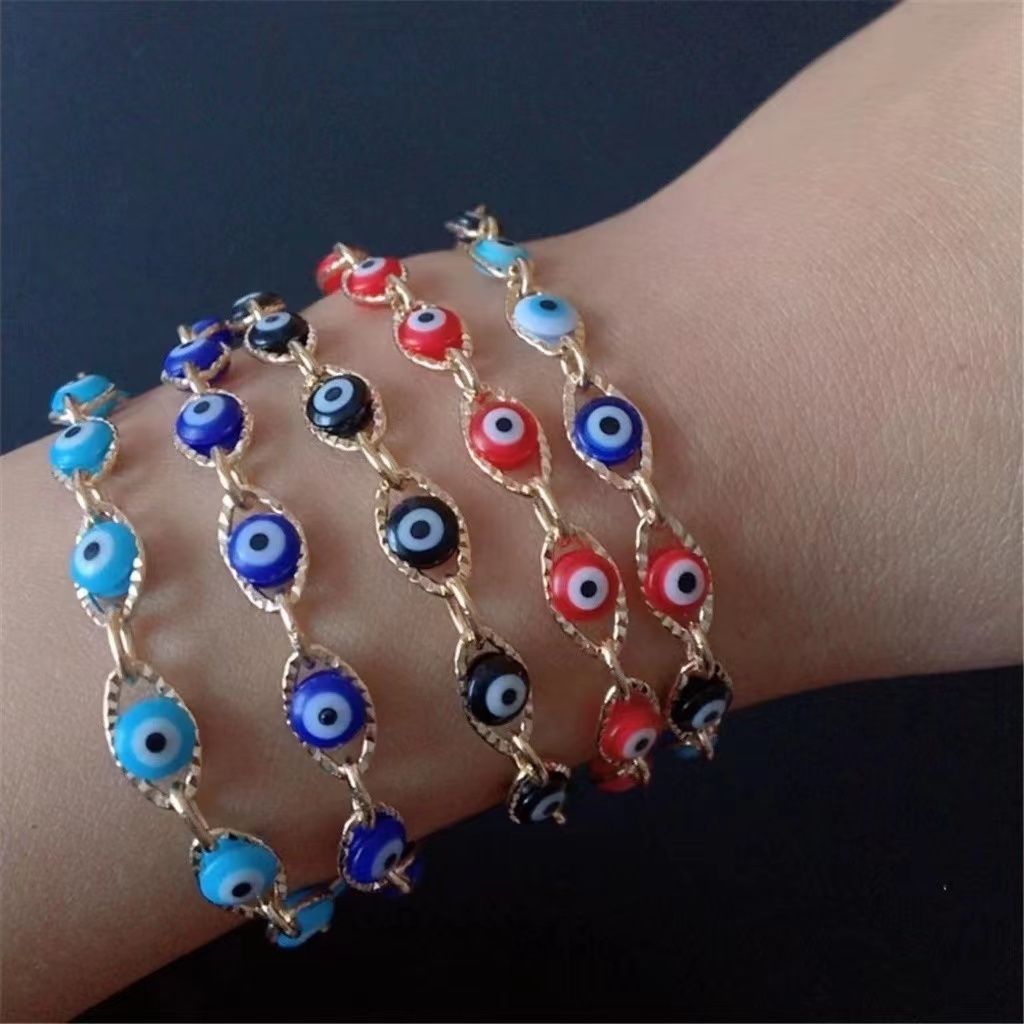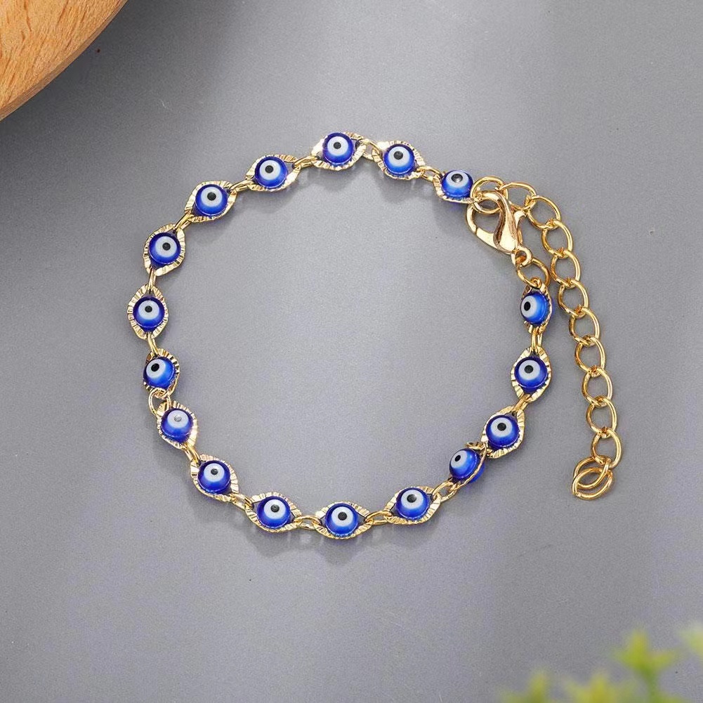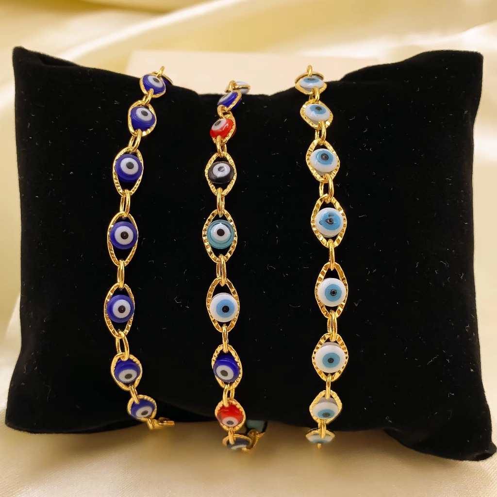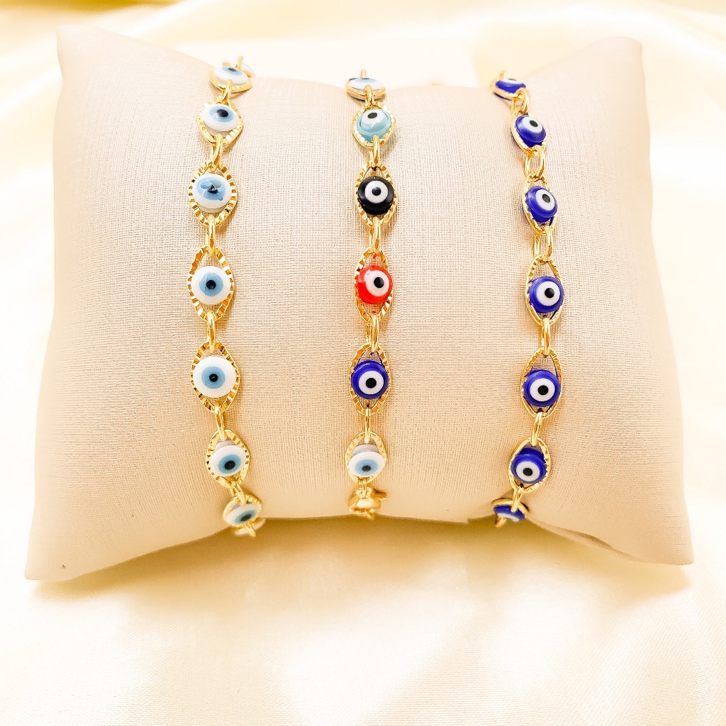 Kit 3 Pulseiras Olho Grego Colorido Azul Escuro e Azul Claro Folheado a Ouro 18k