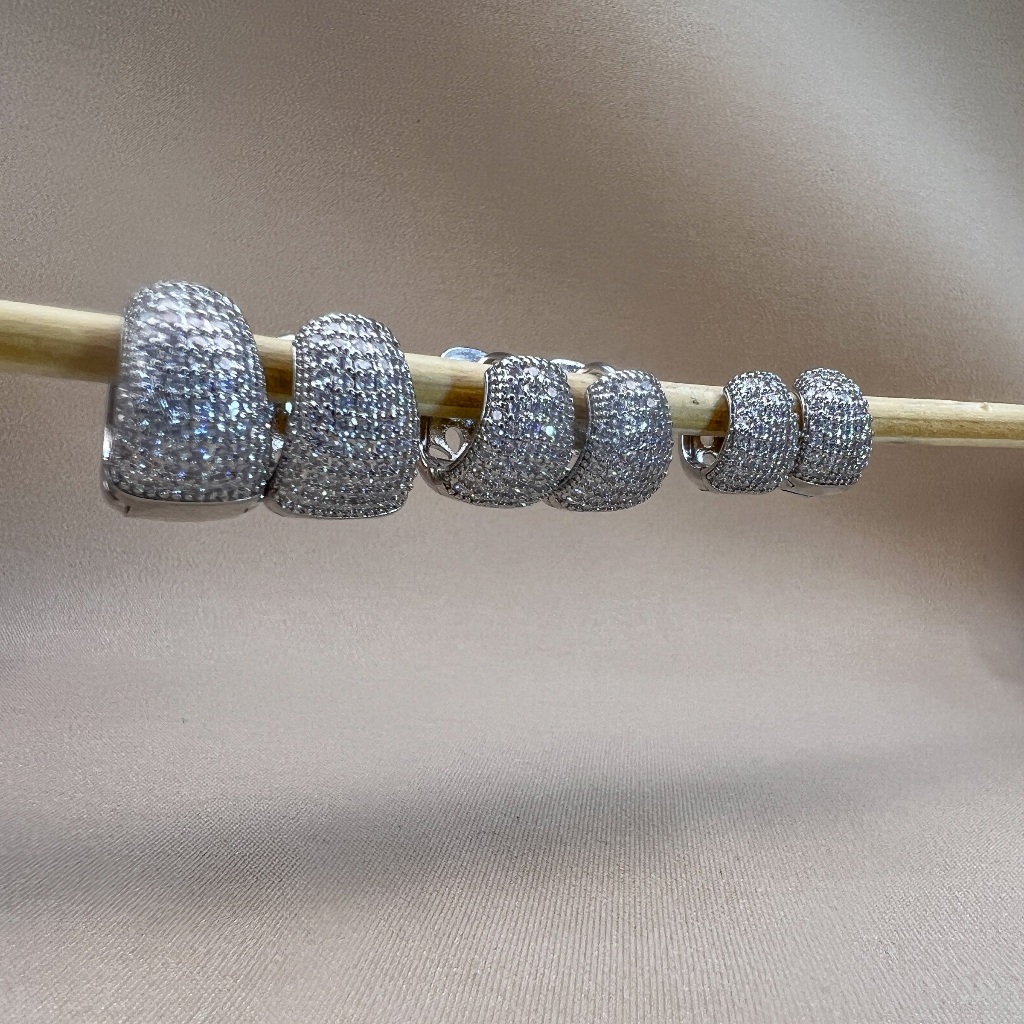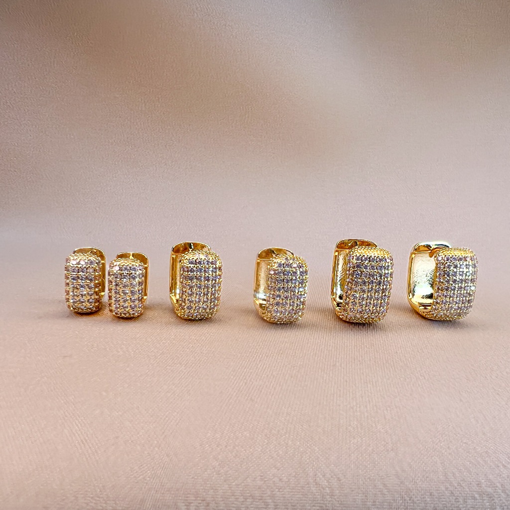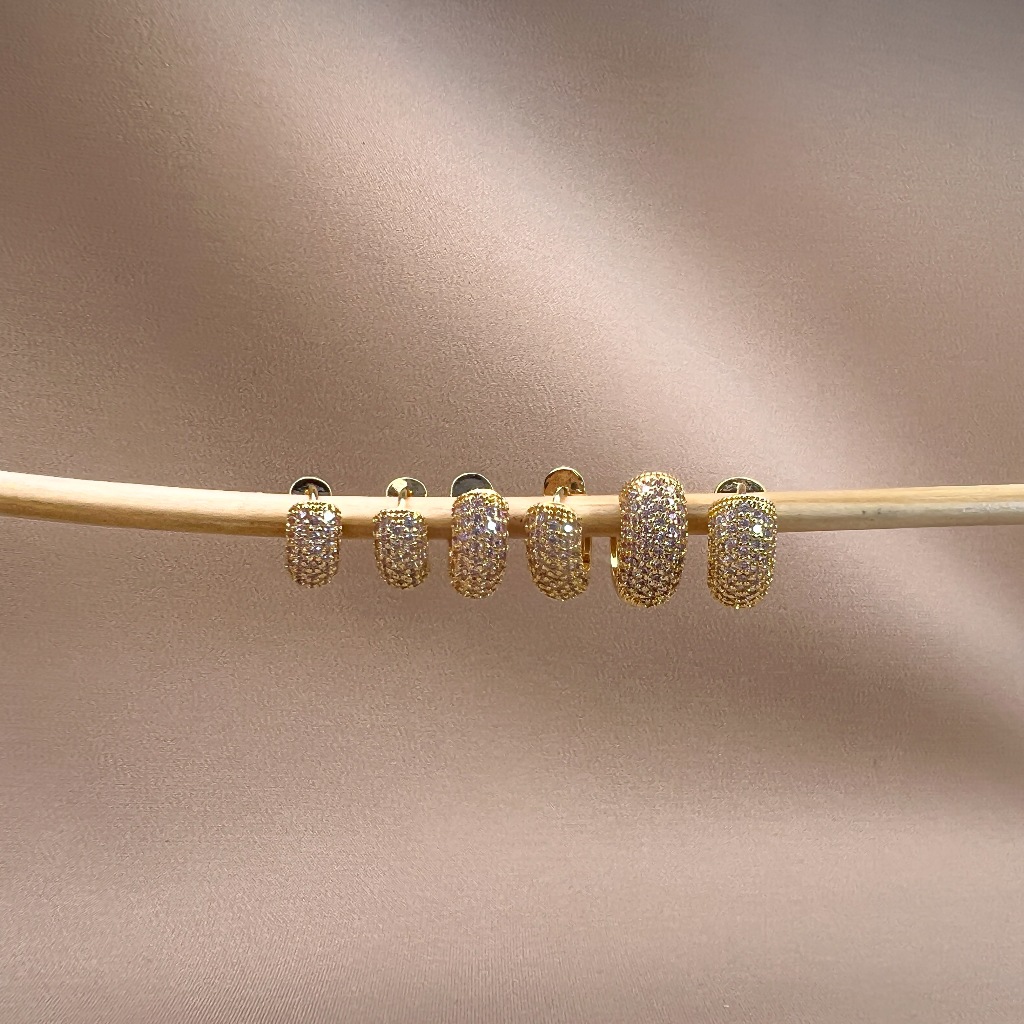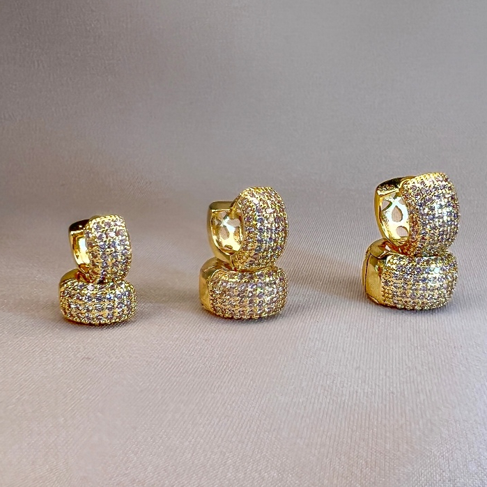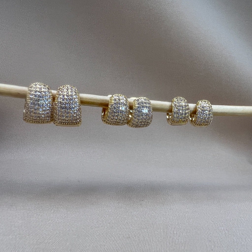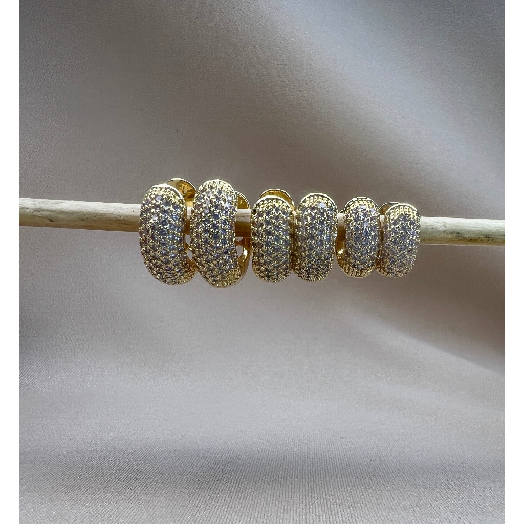 Argola Trio Grande Cravejado Zircônia Luxo Festa Glamour Alta moda Perfeição