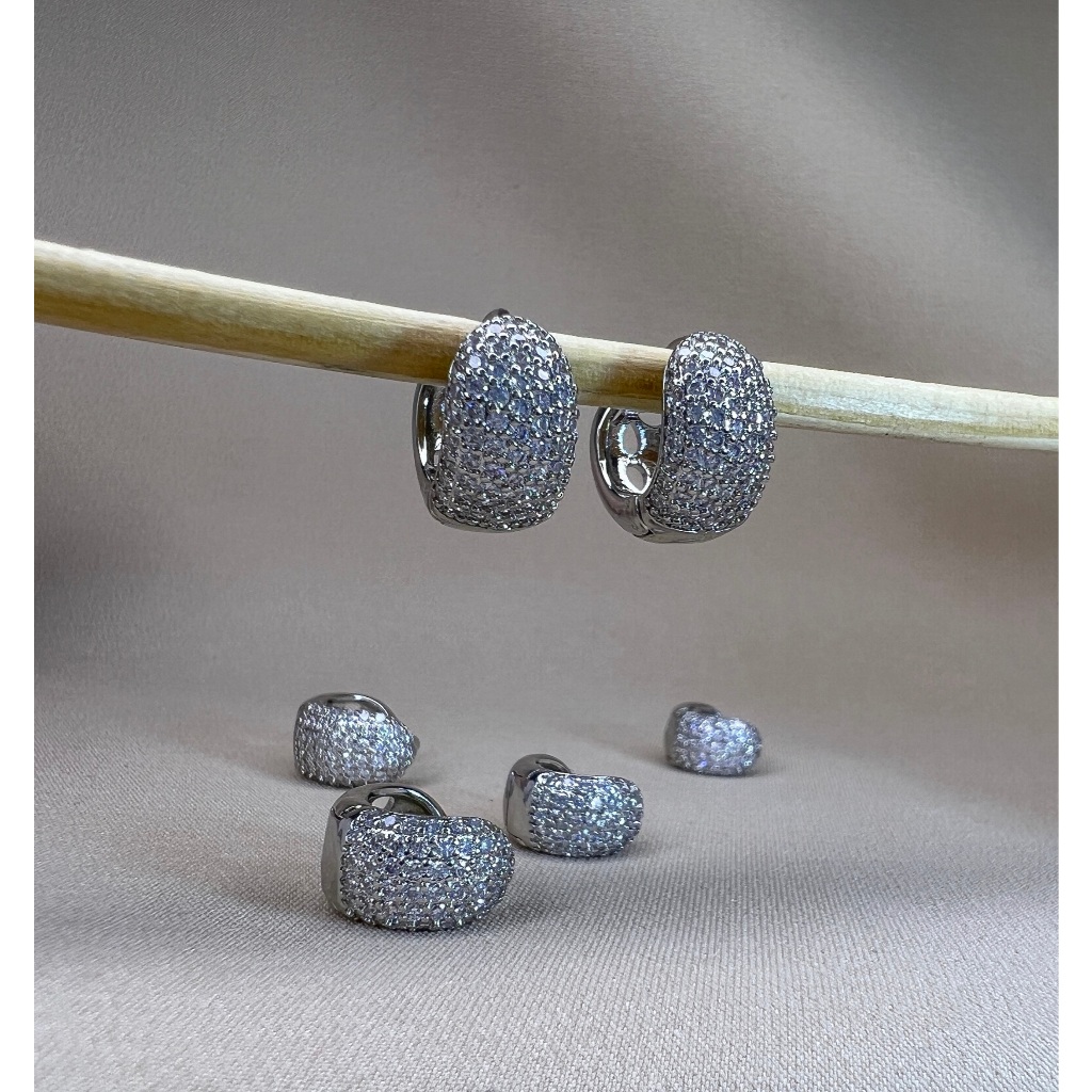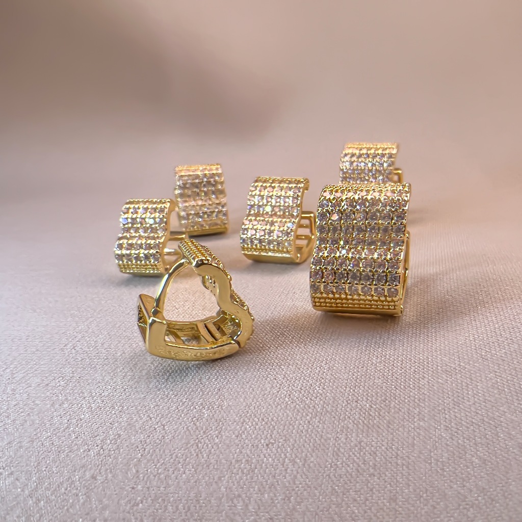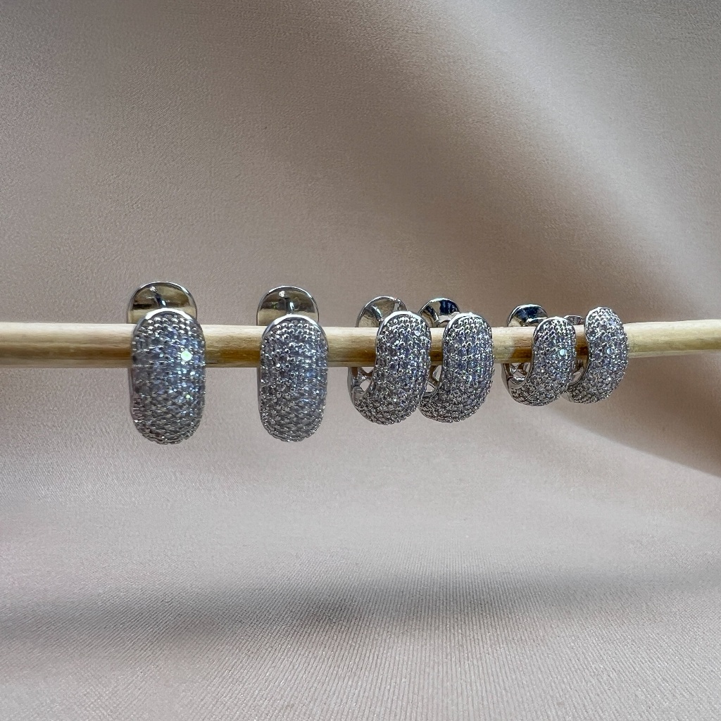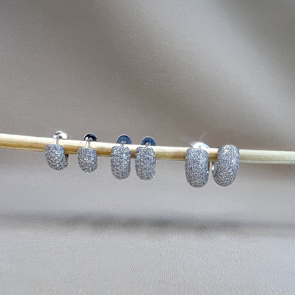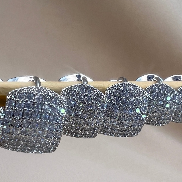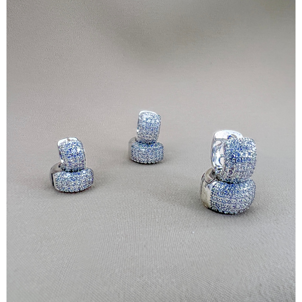 Argola Trio Grande Cravejado Zircônia Luxo Festa Glamour Alta moda Perfeição