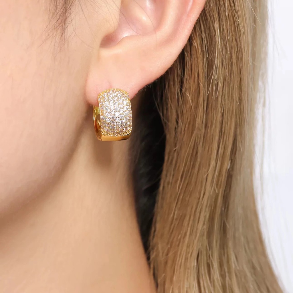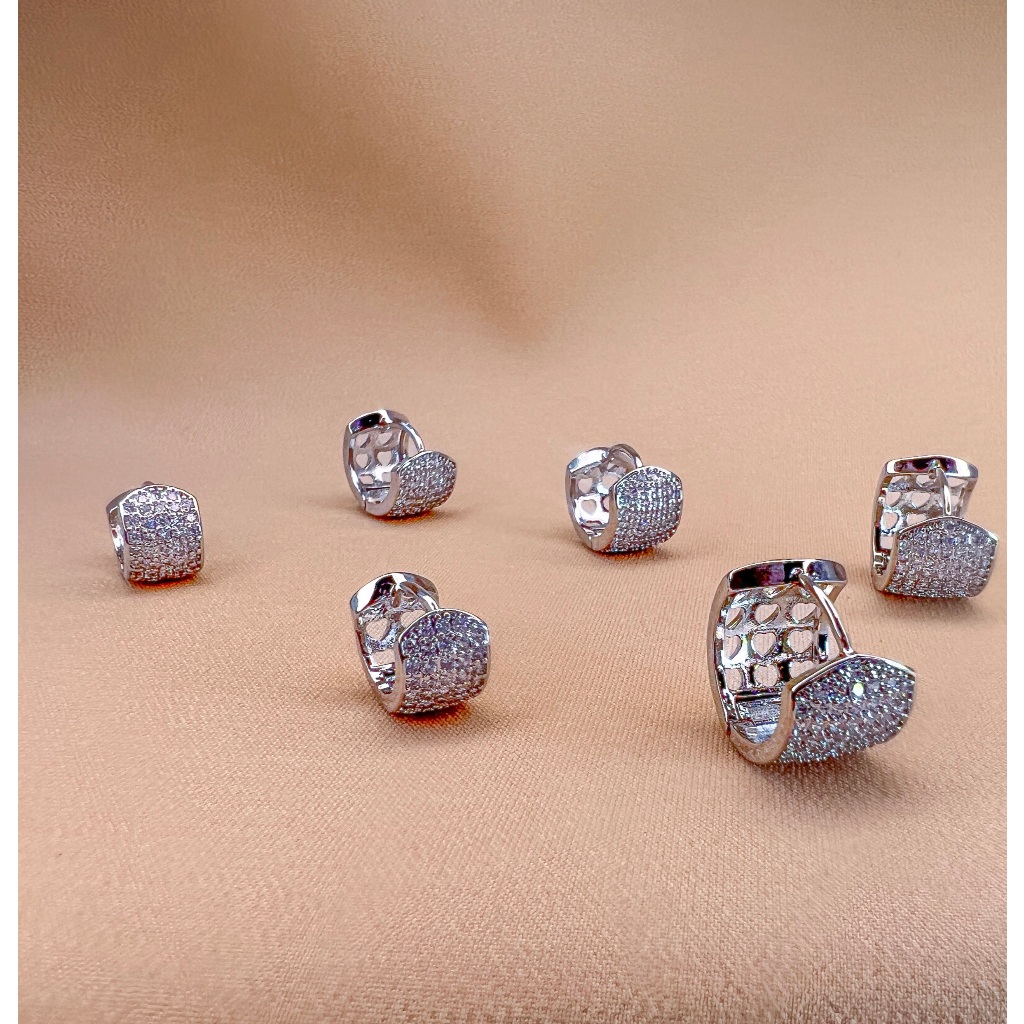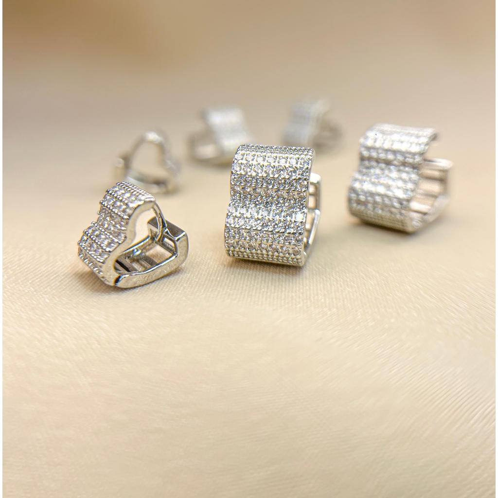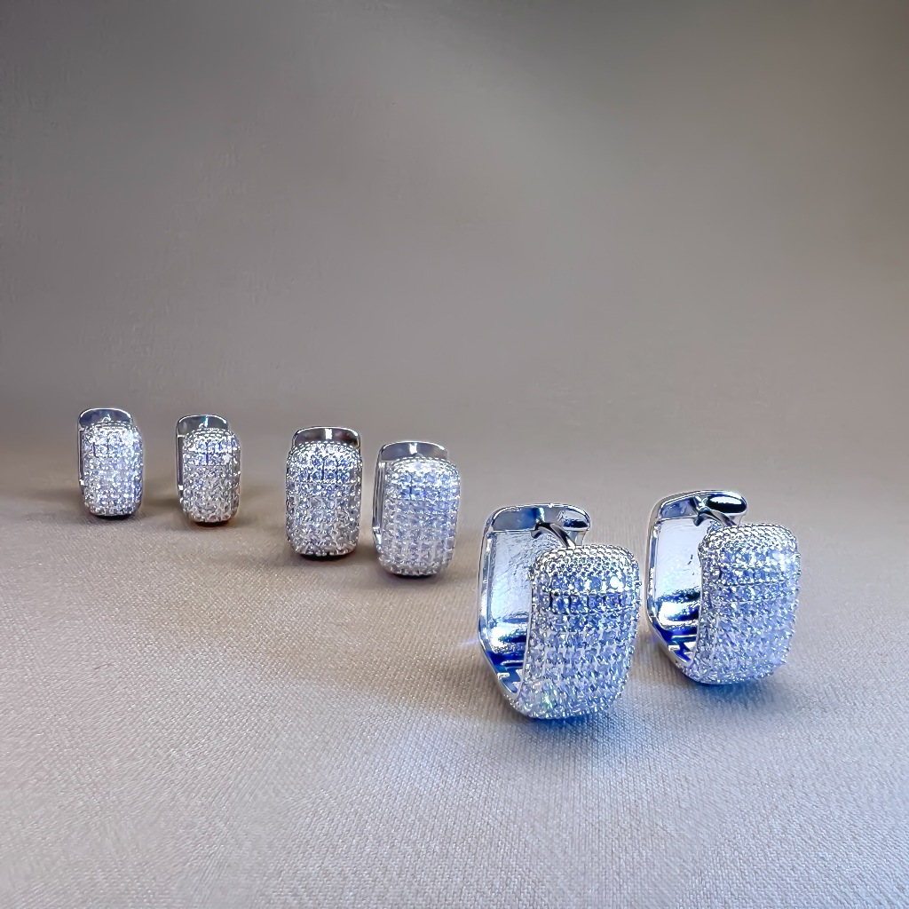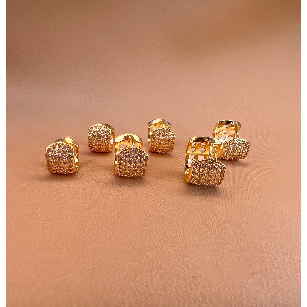 Argola Trio Grande Cravejado Zircônia Luxo Festa Glamour Alta moda Perfeição