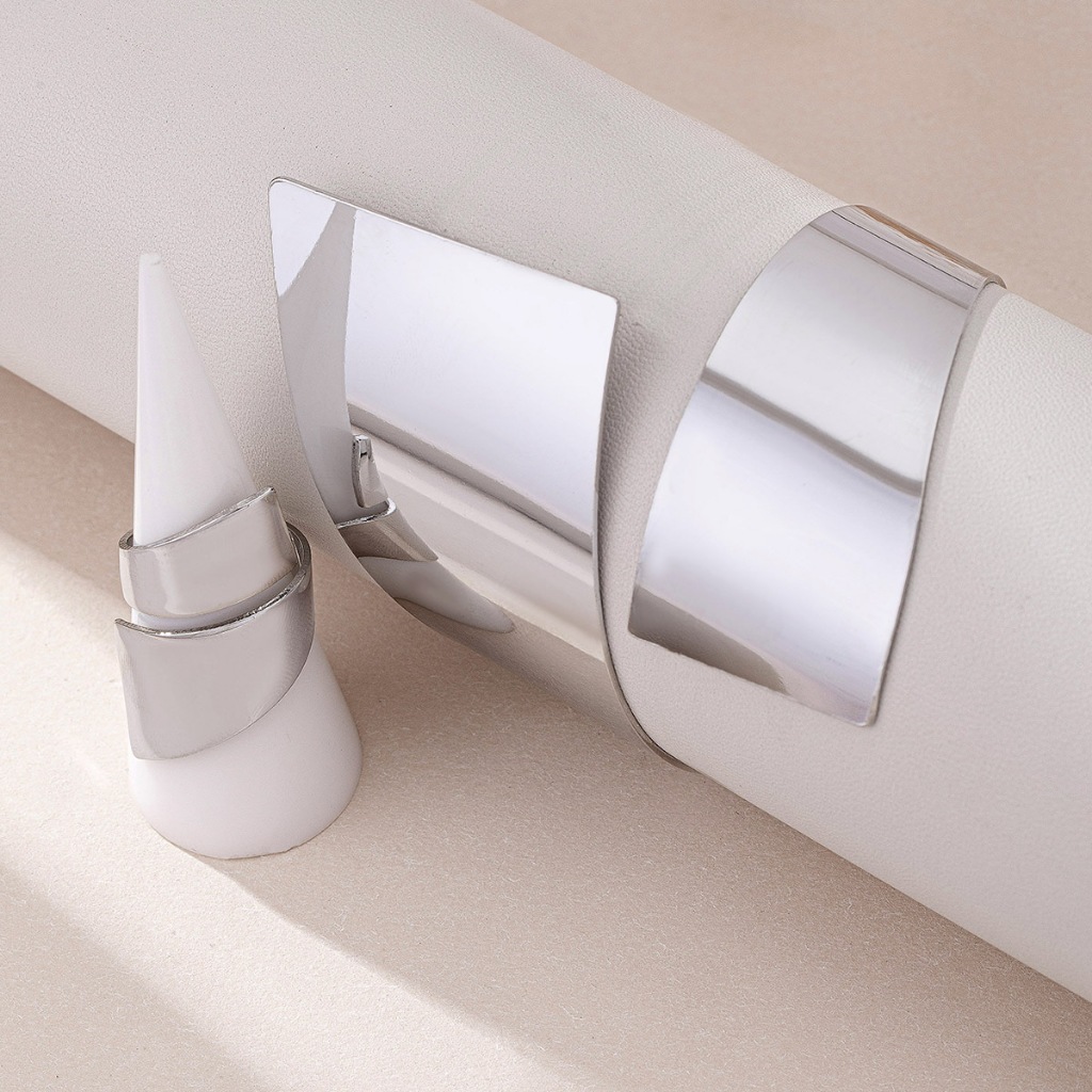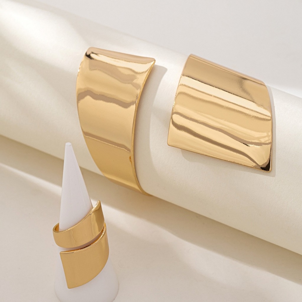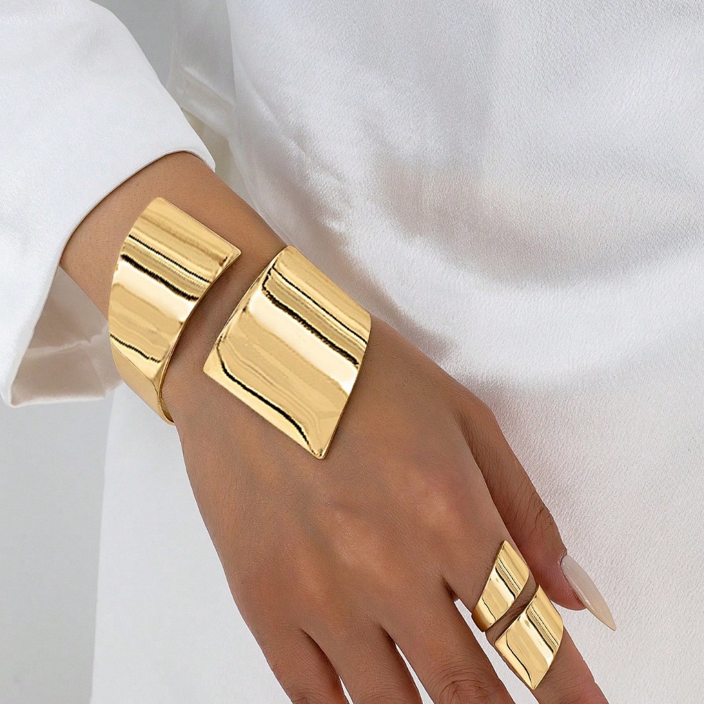 1 Conjunto Joias Bracelete e Anel Geométrico Dourado e prata