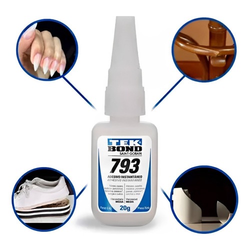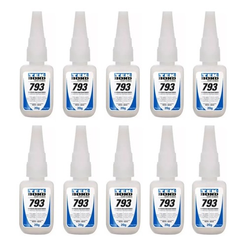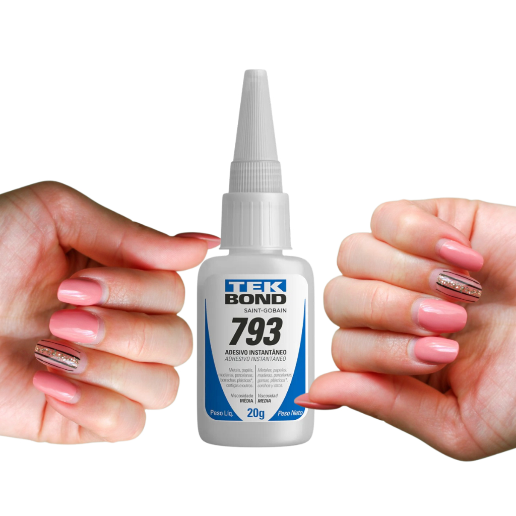 Kit 10 Cola Instantânea Tek Bond 793 20g / Unha Para Postiça/Fibra e Pedrarias Bico Fino / Fácil Aplicação / Super Forte