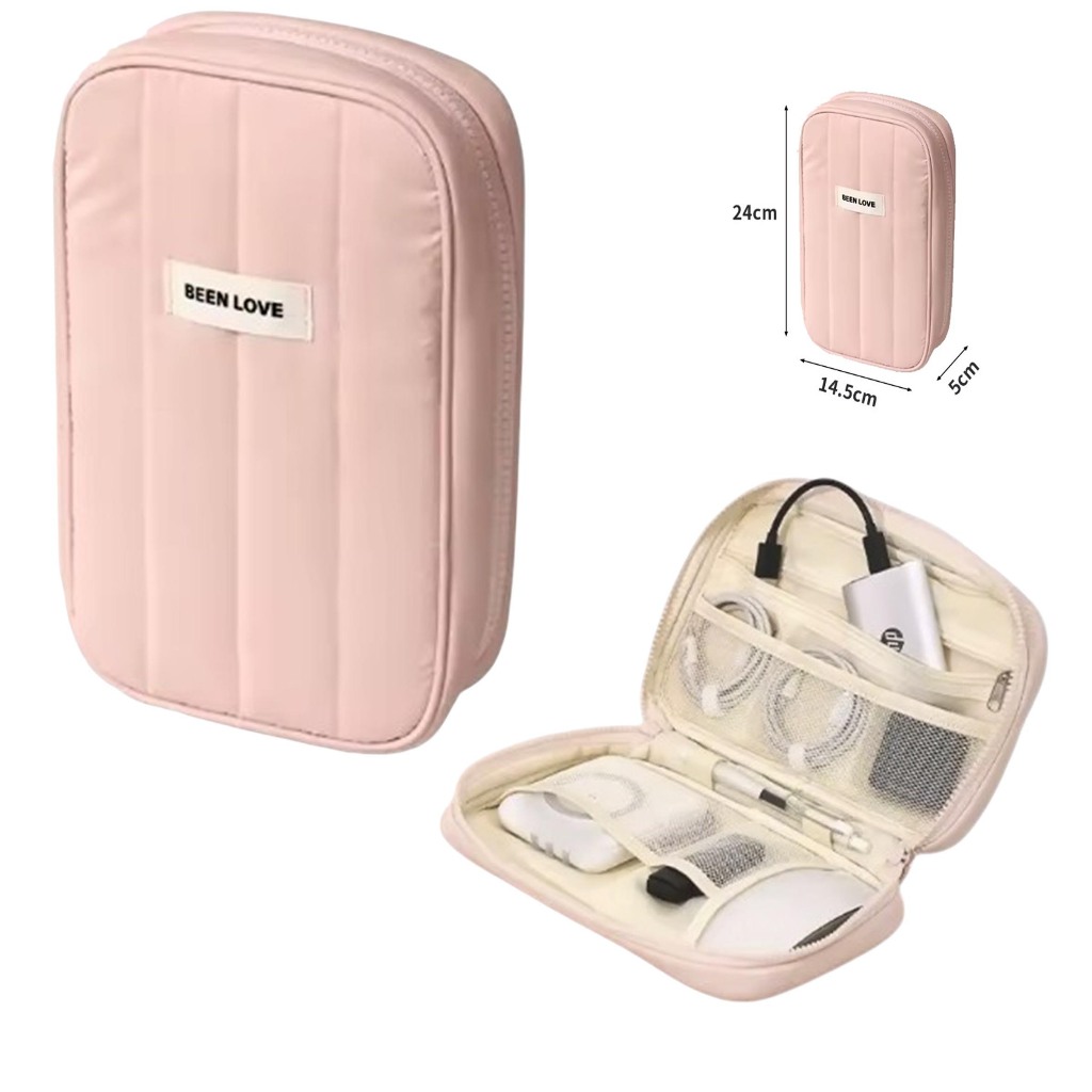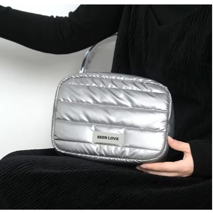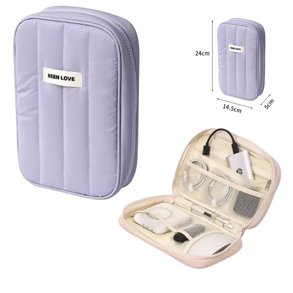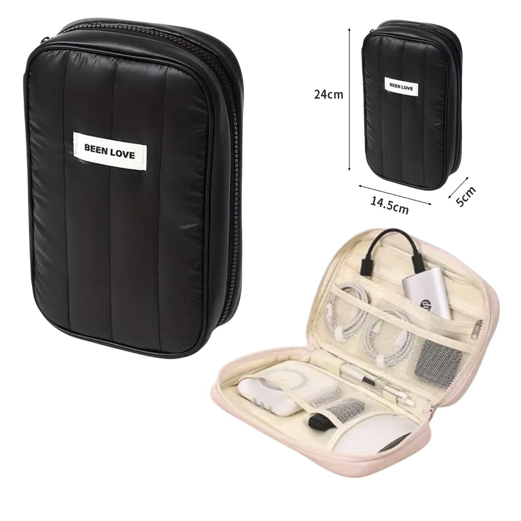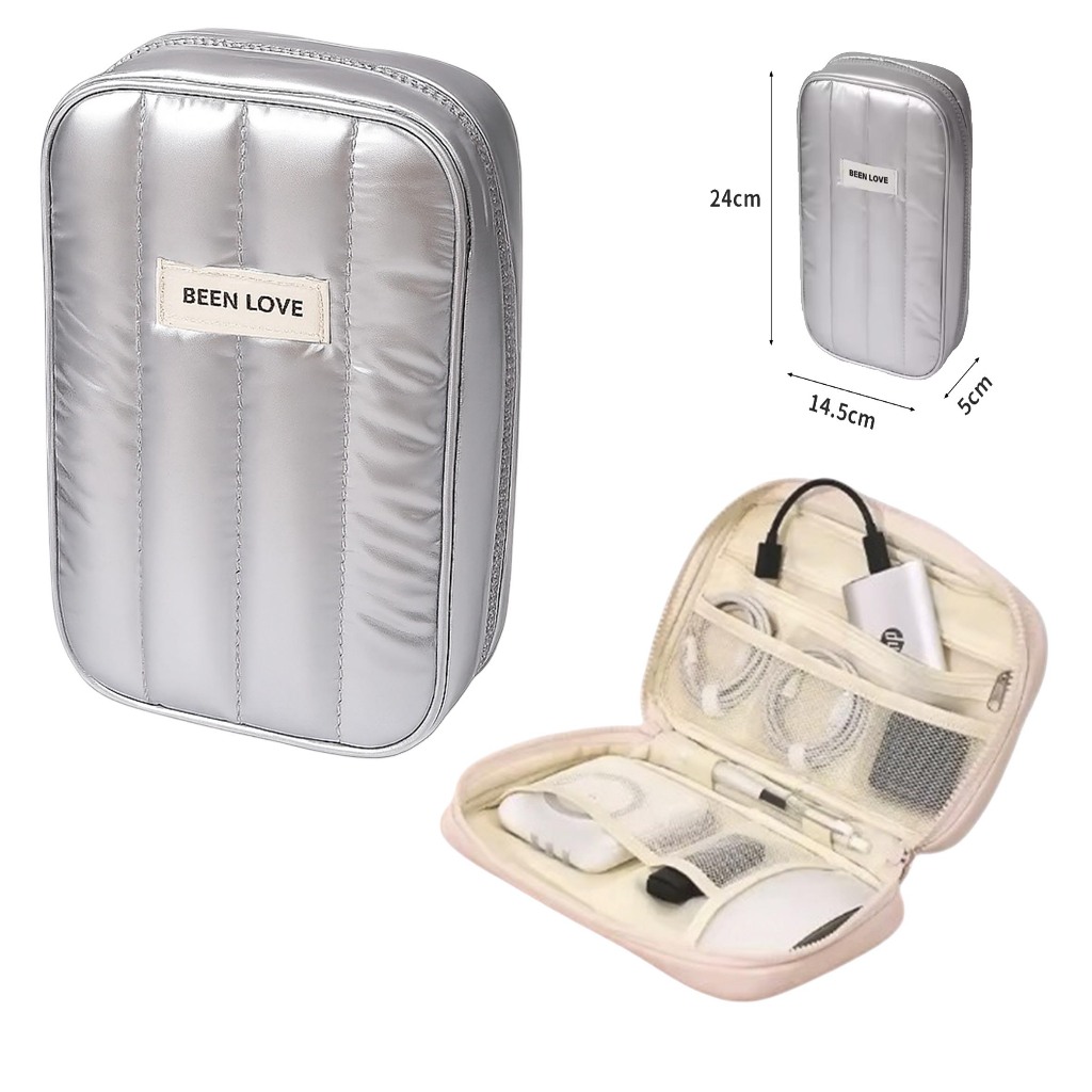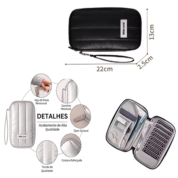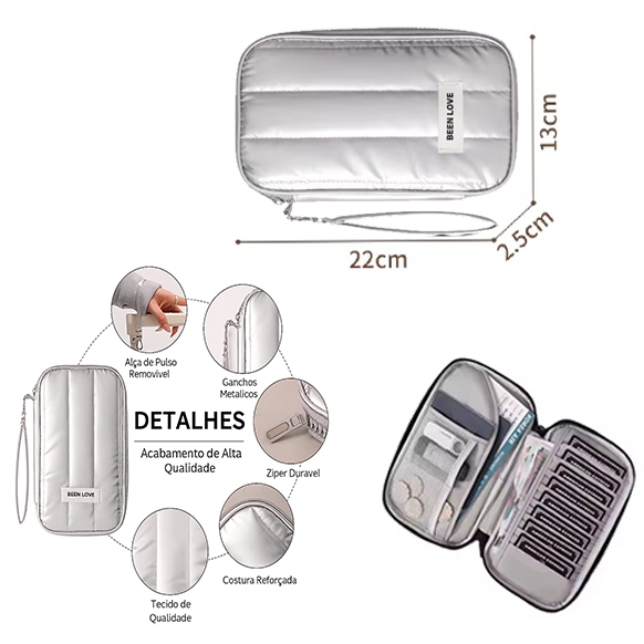 Necessaire puffer de Viagem Acolchoado, Bolsa de Maquiagem, Organizador de cabos e porta documento