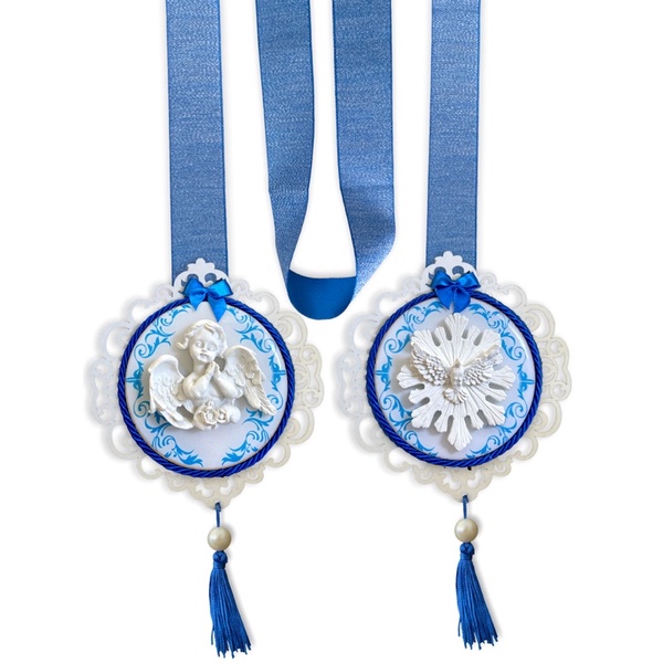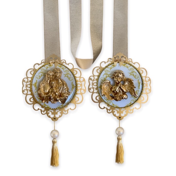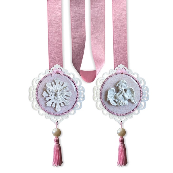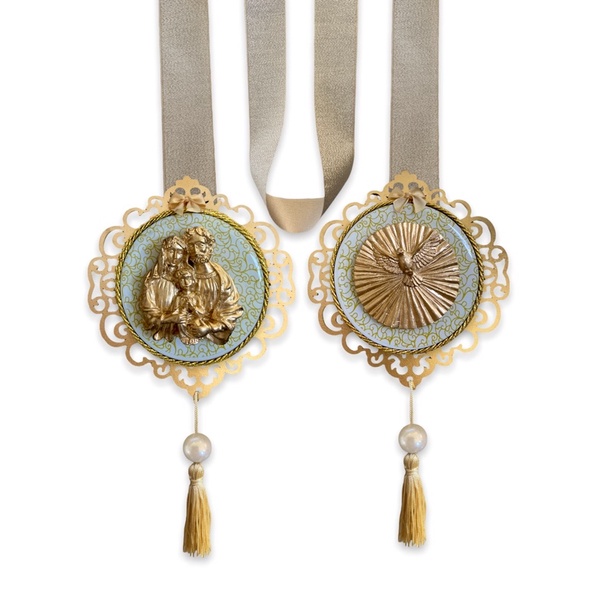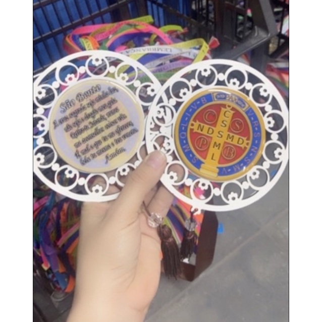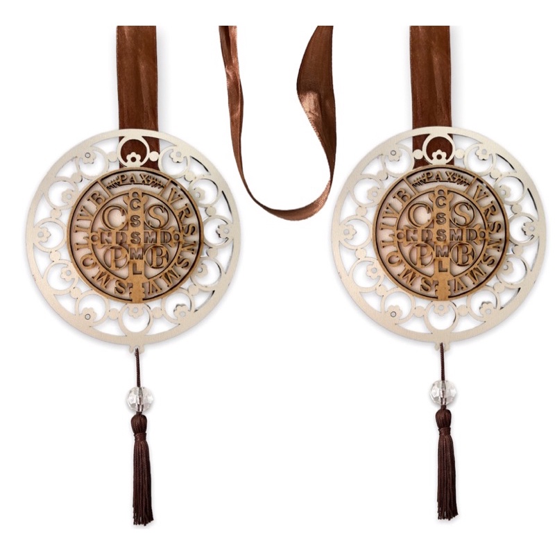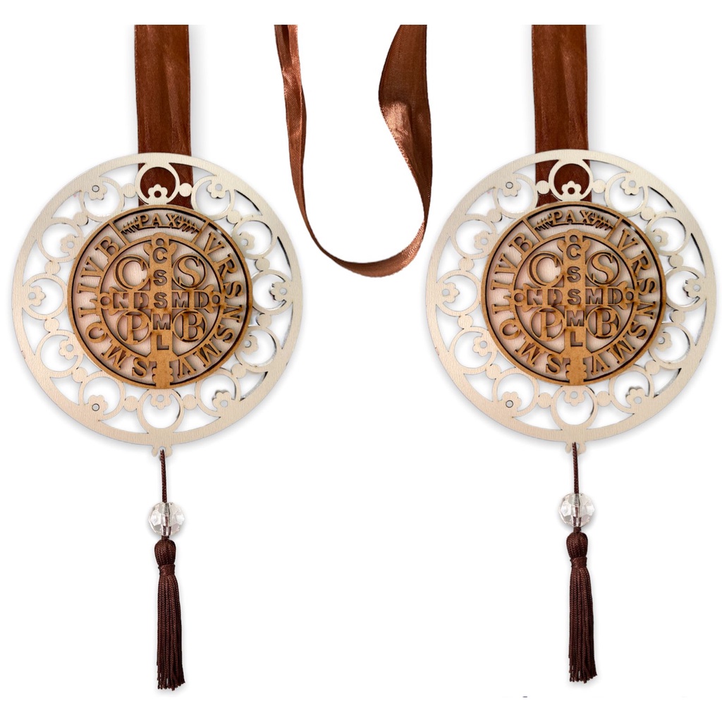 Adorno de Porta Medalha de São Bento Duplo Escapulario de Porta Fita Cetim