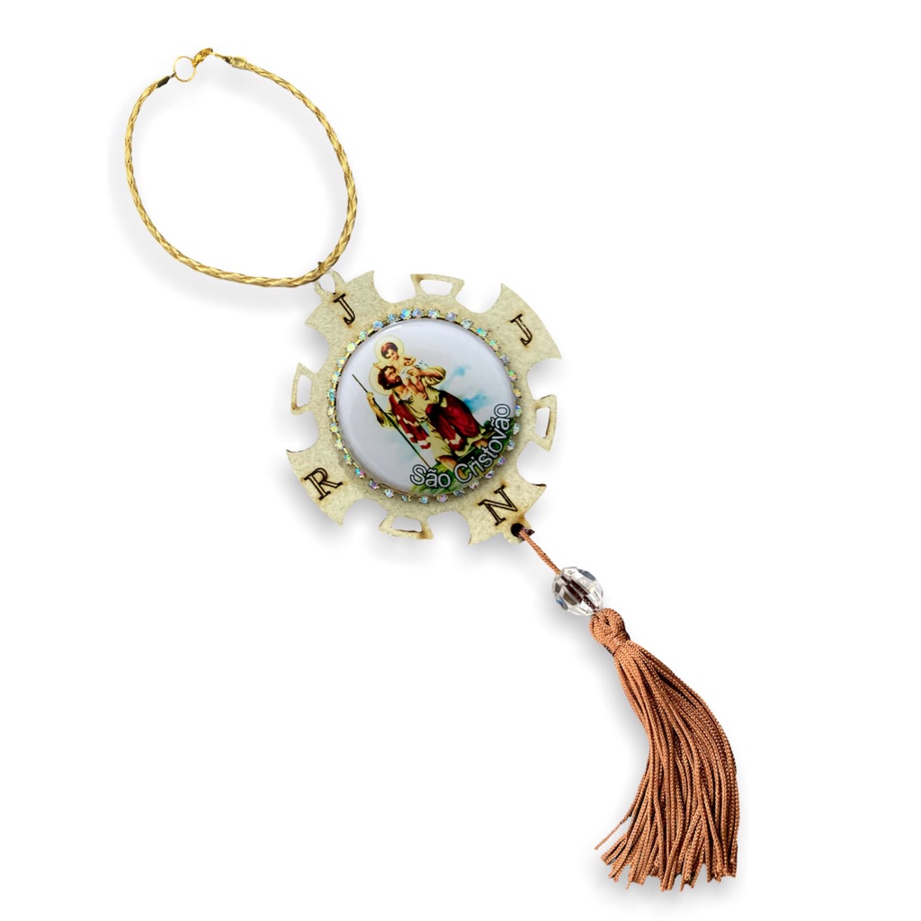 Enfeite De Carro São Cristovão Com Oração Verso Retrovisor