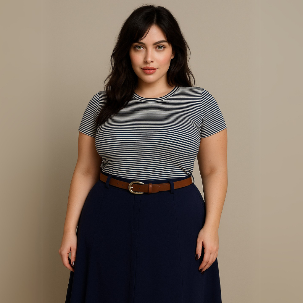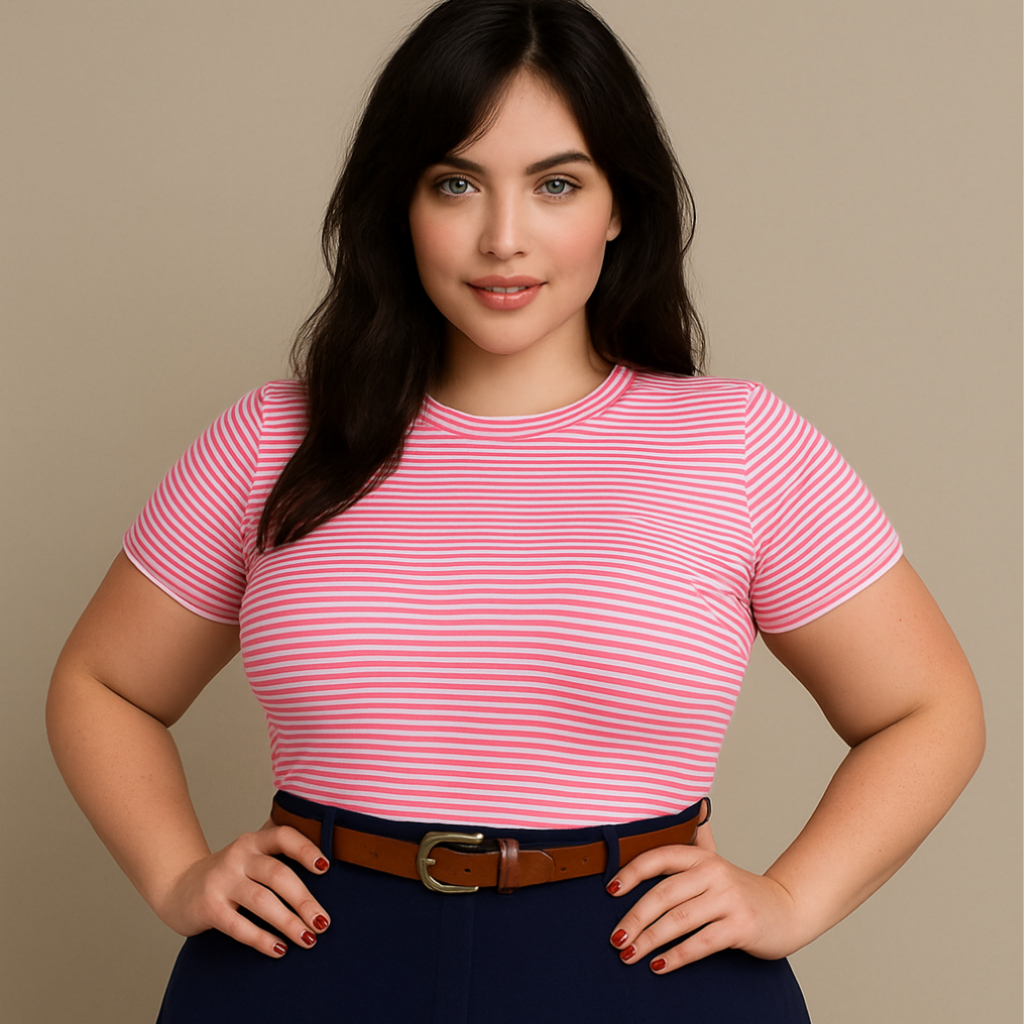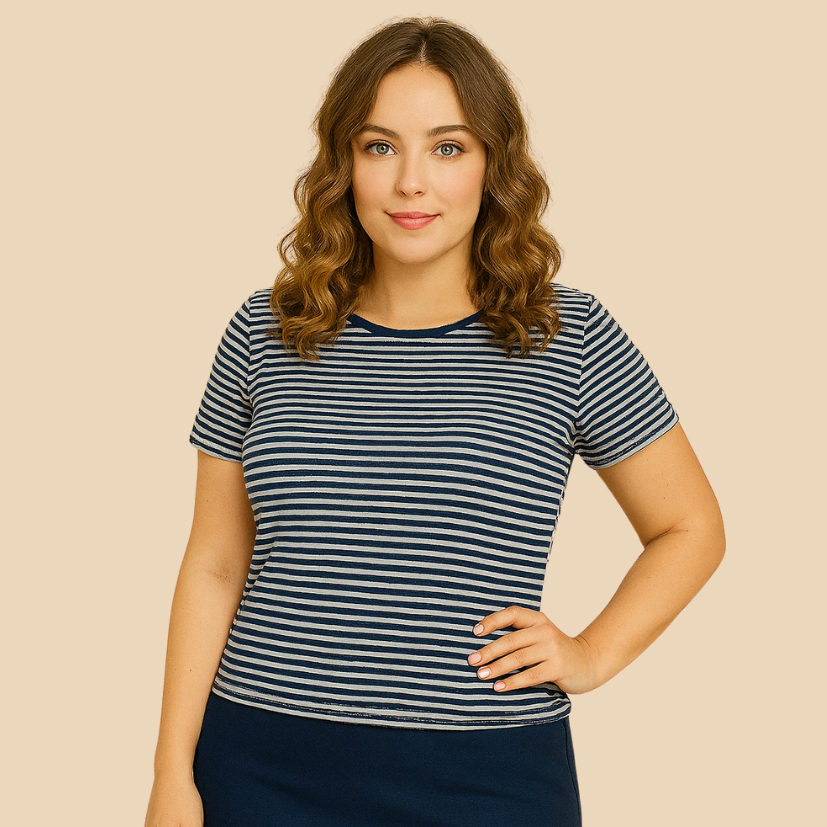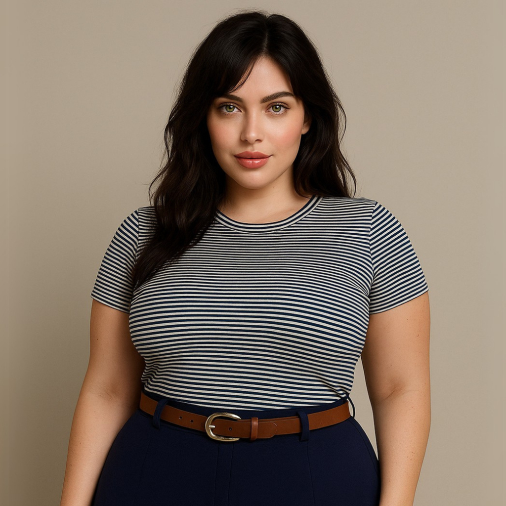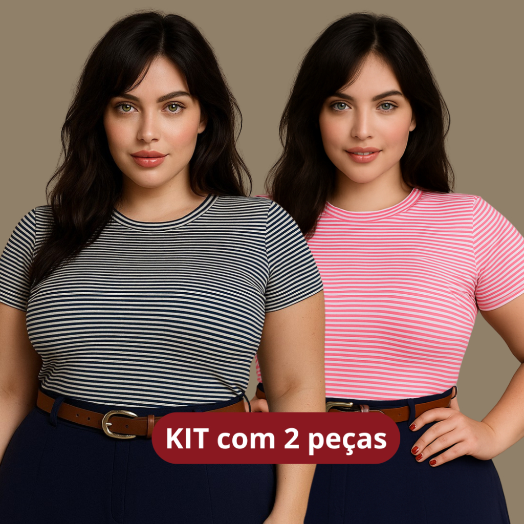 Blusa Plus Size T-Shirt babylook Listrada com casual Listras Básicas Moda Feminina