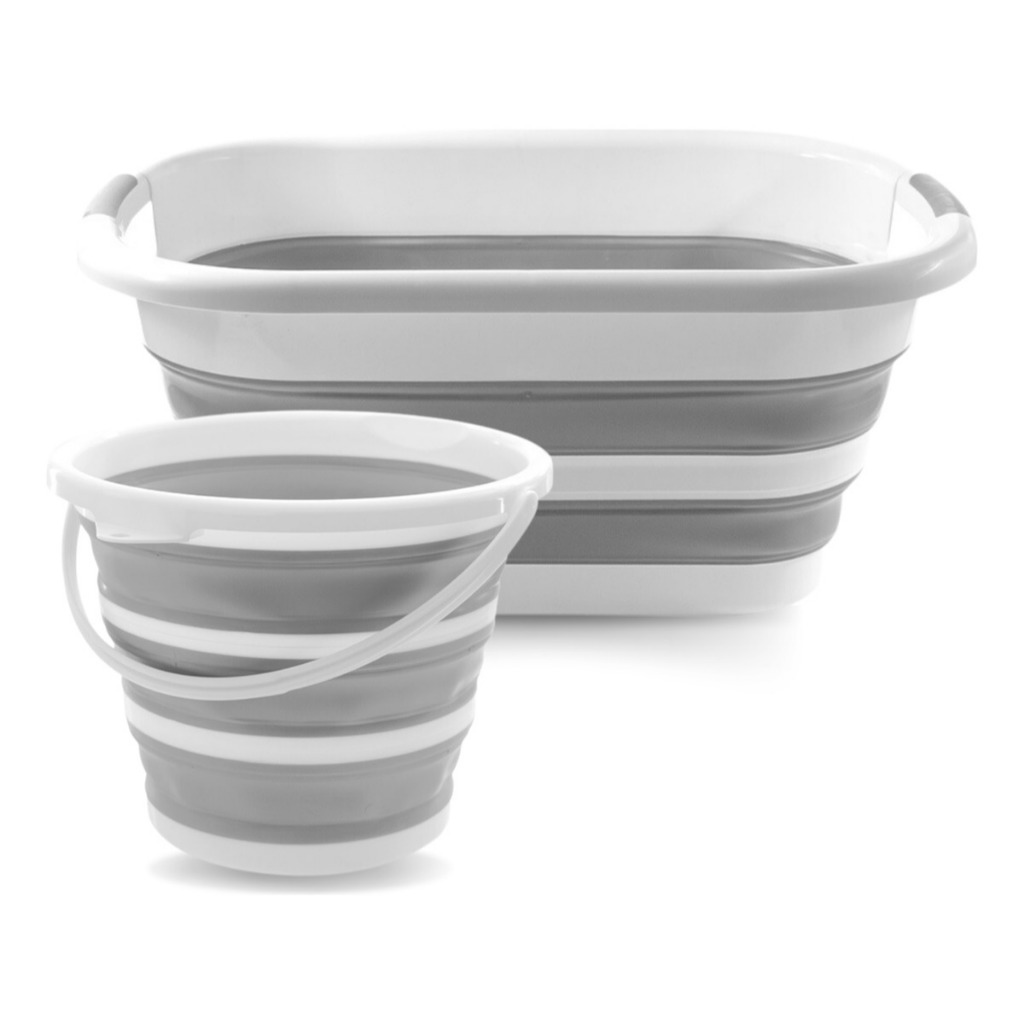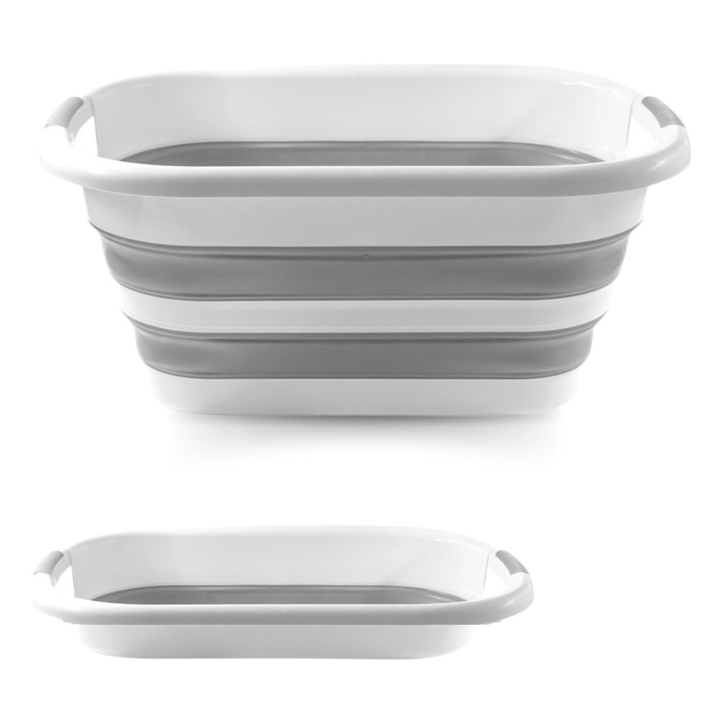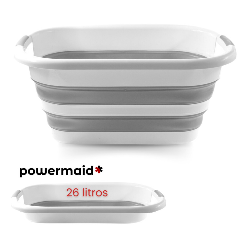 Balde Dobrável Retrátil Flexível em Silicone 26L Compacto, resistente, ideal para limpeza, carro, camping e organização.