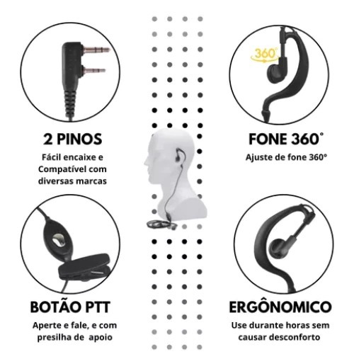 Fone de Ouvido Para Comunicador Rádio Baofeng 777S 888S UV5R Kenwood Talkabout Rick Ptt