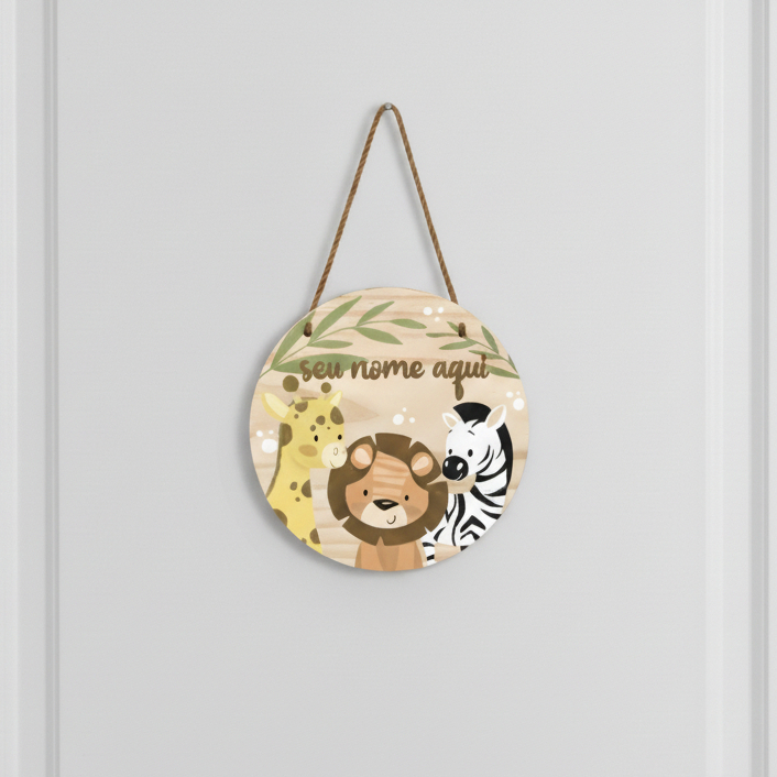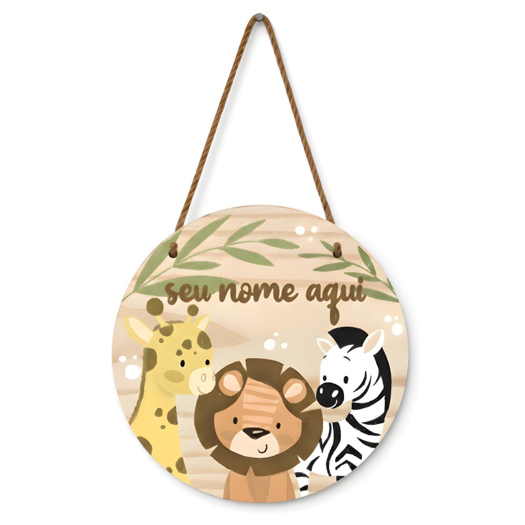 Placa Nome personalizado tema Safari enfeite de porta– Decoração Quarto Bebê/Porta Maternidade